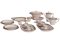 12 piatti piani, 36 piatti fondi , 1 piatto tondo da portata, 6 vassoi ovali,10 tazzine da caffè con piattini, 12 tazze da tè con piattini, 1 teiera, 1 caffettiera, 2 piccole lattiere, 1 legumiera, 1 zuppiera, 1 zuccheriera, 1 lattiera