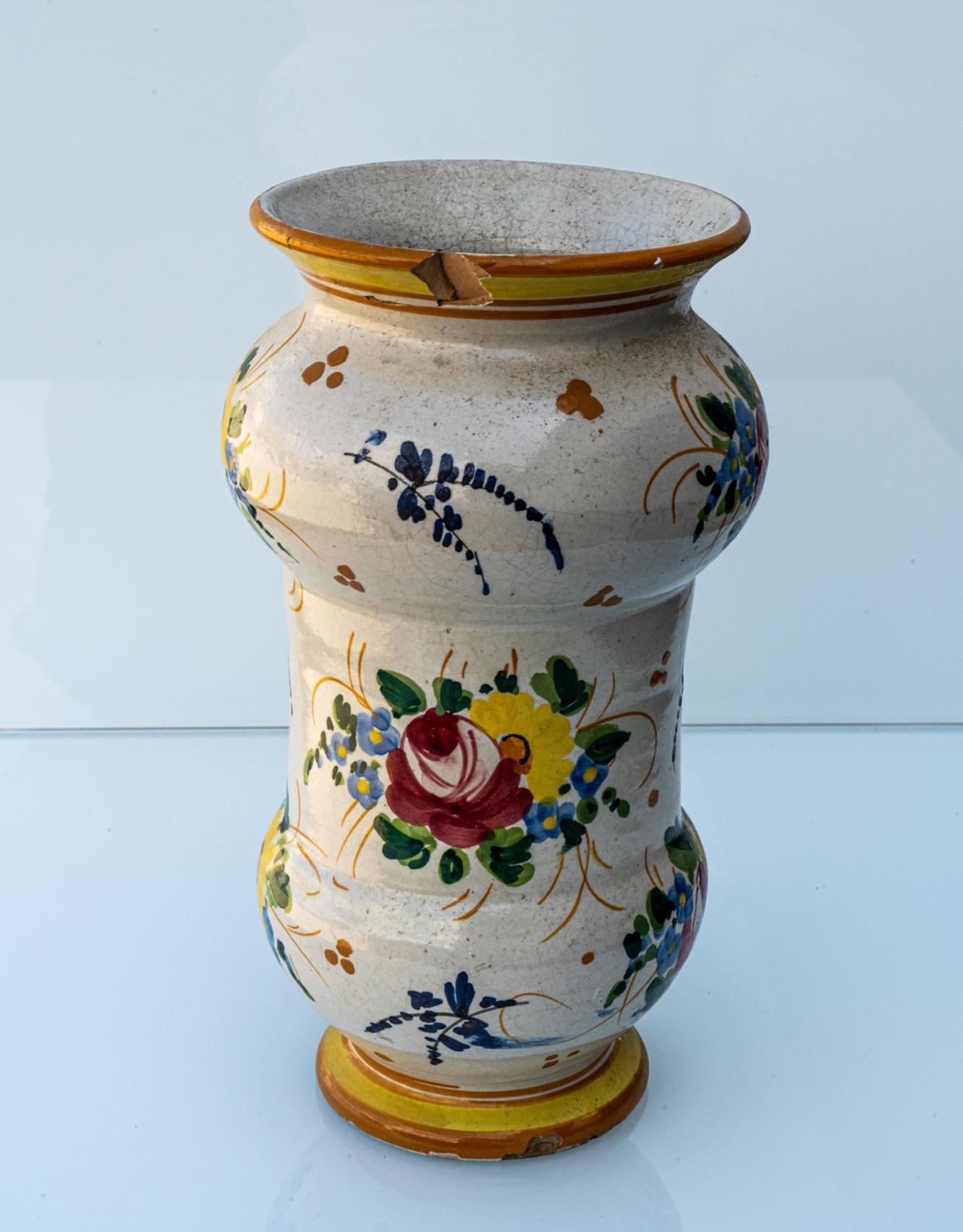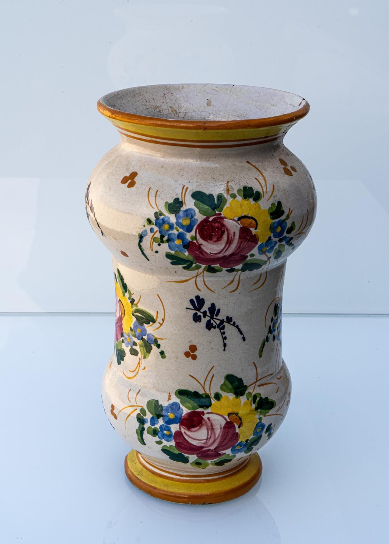 Albarello con decoro floreale e mazzetto. Manifattura di Castelli degli anni Trenta del XX secolo