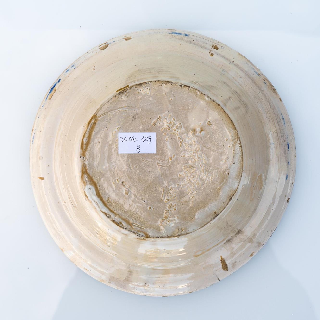 Piatto con decoro geometrico nella tesa e floreale blu nel cavetto