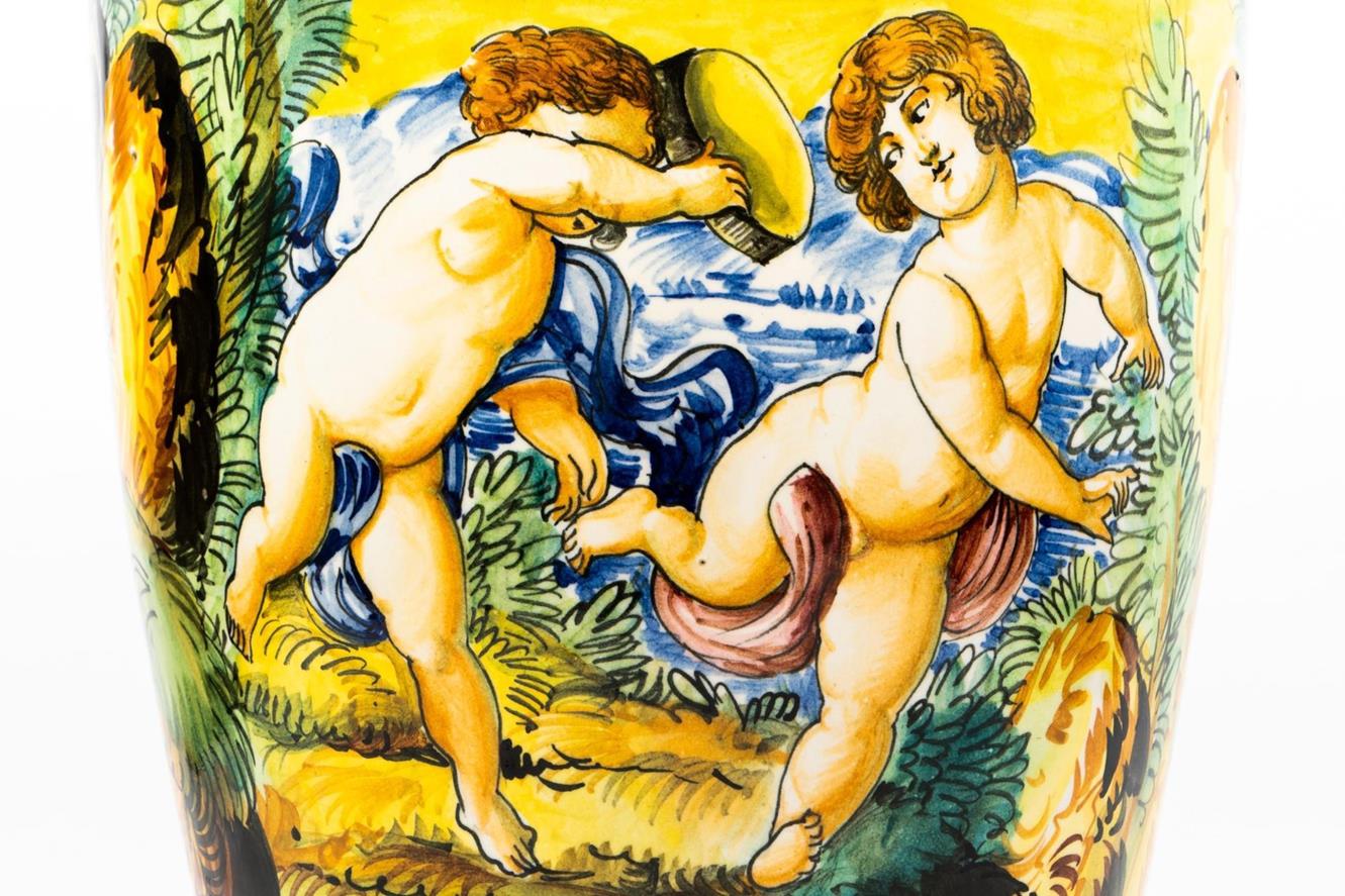 Vaso interamente istoriato con putti danzanti sul fronte e paesaggio al retro