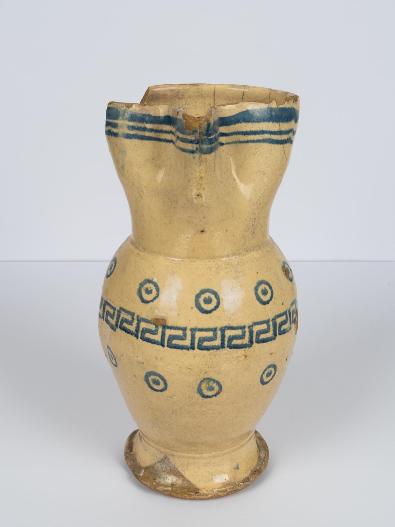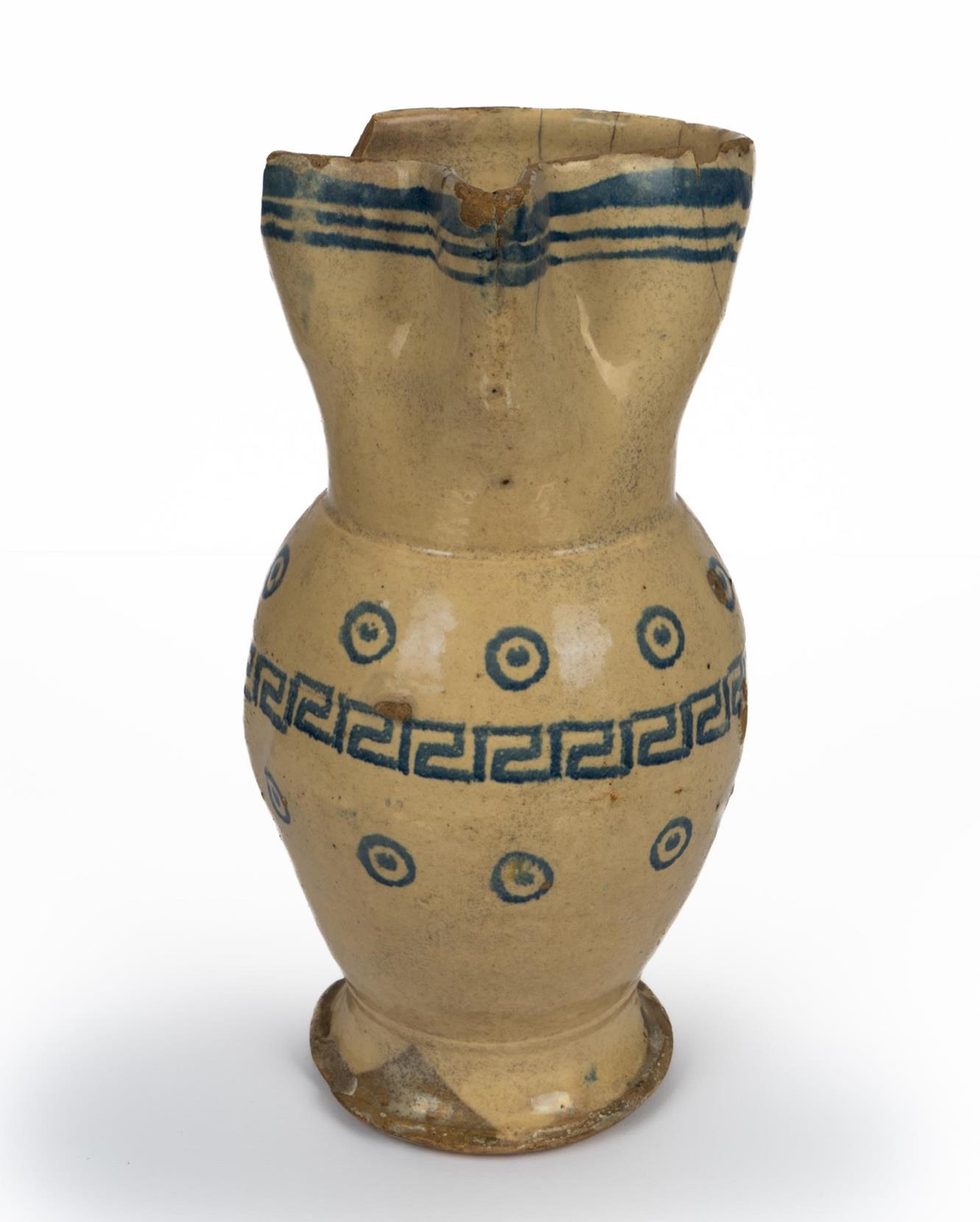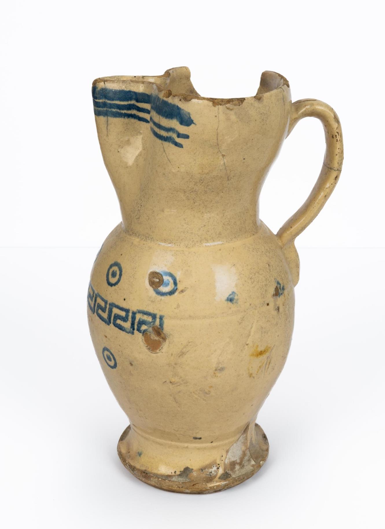 Grande brocca con decoro geometrico e a cerchi nei toni dell'azzurro Manifattura di Grottaglie del XIX secolo