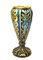 Vaso-calice costolato a bordo mistilineo decorato a lustro metalico con alternanza verticale di motivi fitomorfi e fantastici. Manifattura di Gualdo Tadino degli anni '40 del Novecento