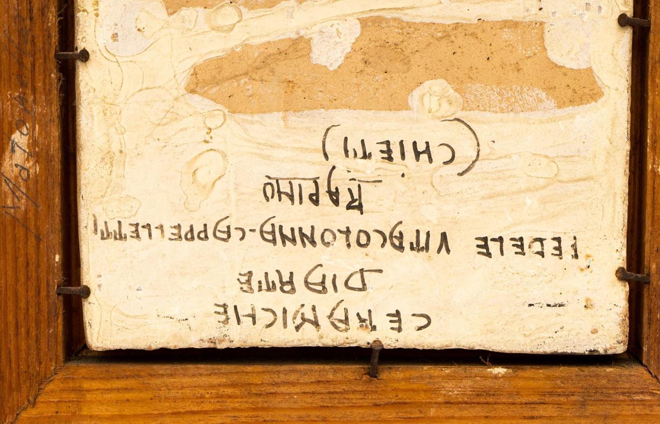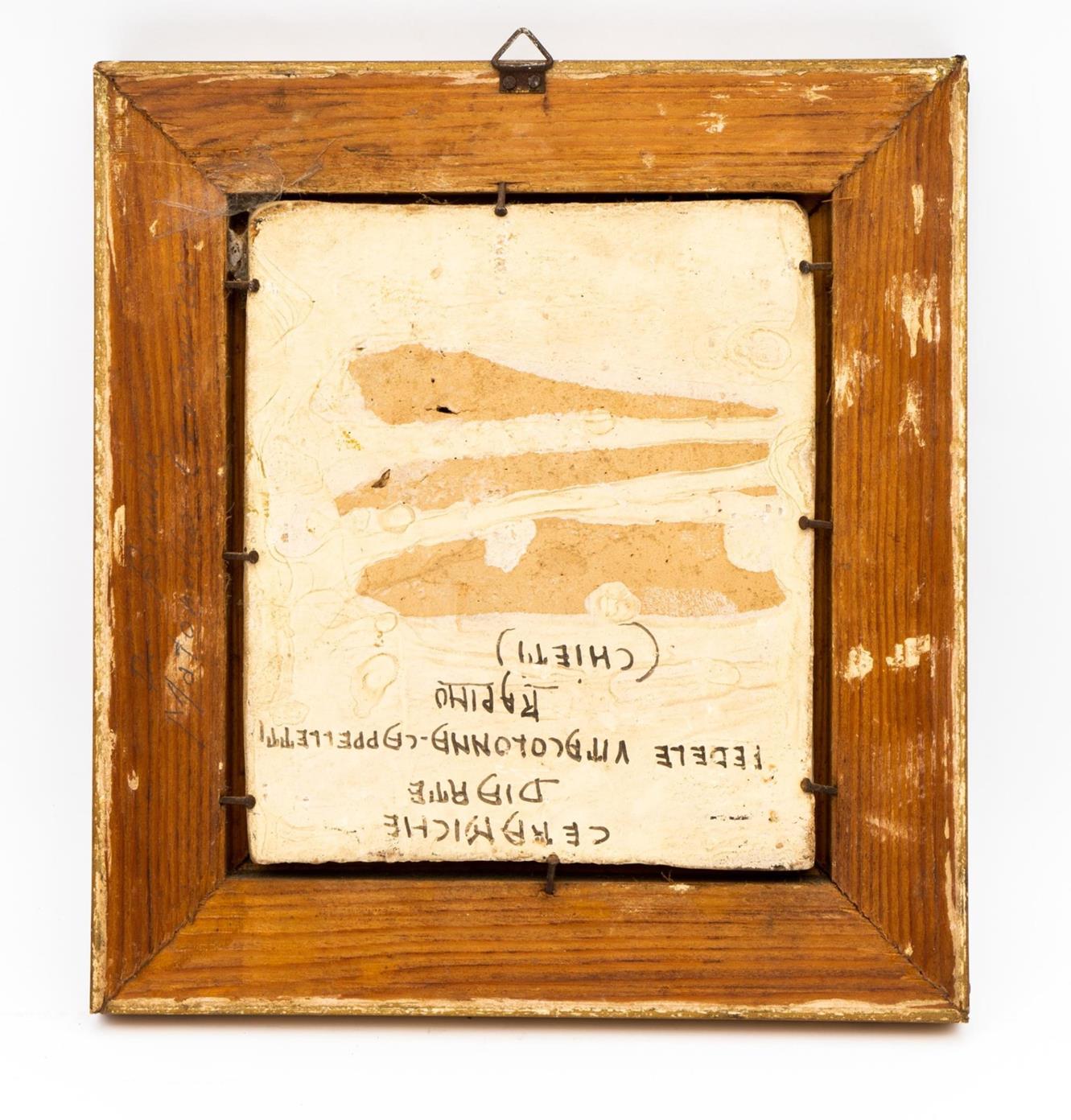 mattonella 13.1x11.2 cm; con cornice 19x17.5 cm. In cornice