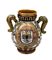 Vaso biansato realizzato da Paolo Rubboli a lustro con manici ad animali fantastici e aquila imperiale in blasone