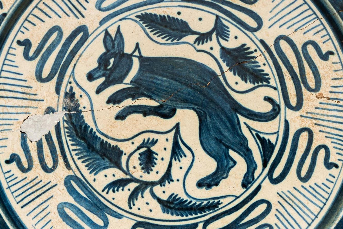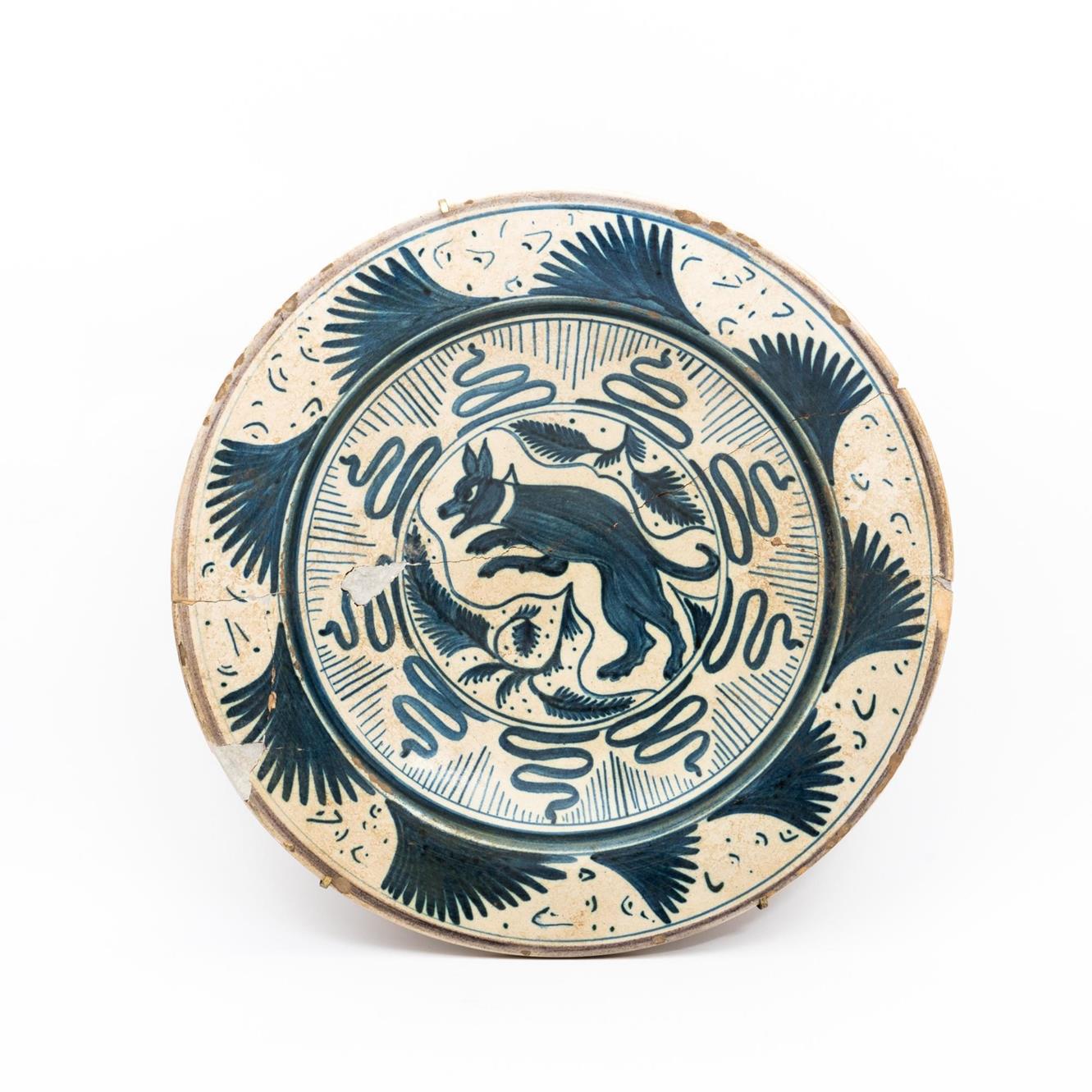 Piatto con decoro in monocromia blu e lupo rampante dell'antico casato fiorentino degli Altoviti Manifattura umbra della metà del XVI secolo