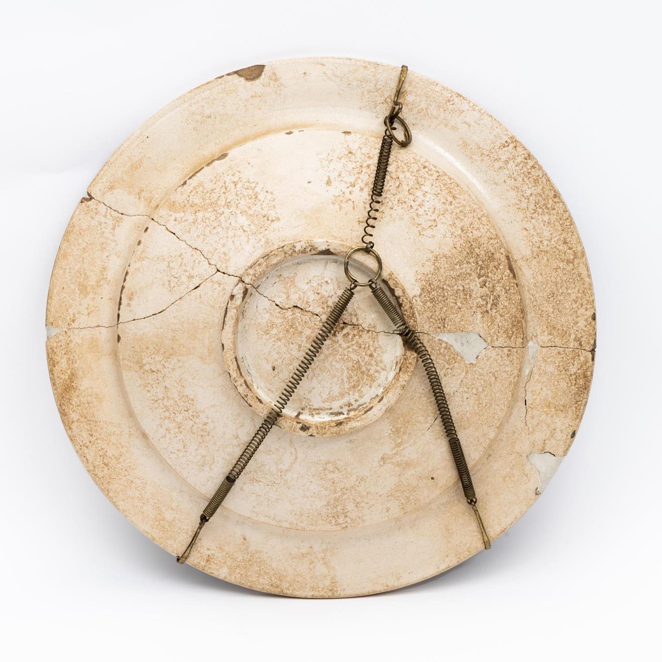 Decorato alla tesa con motivi fitomorfi entro una cornice con decoro a monticelli alternata a motivi filimorfi e centrata nella figura del cavo con l'elemento araldico del casato fiorentino degli Altoviti