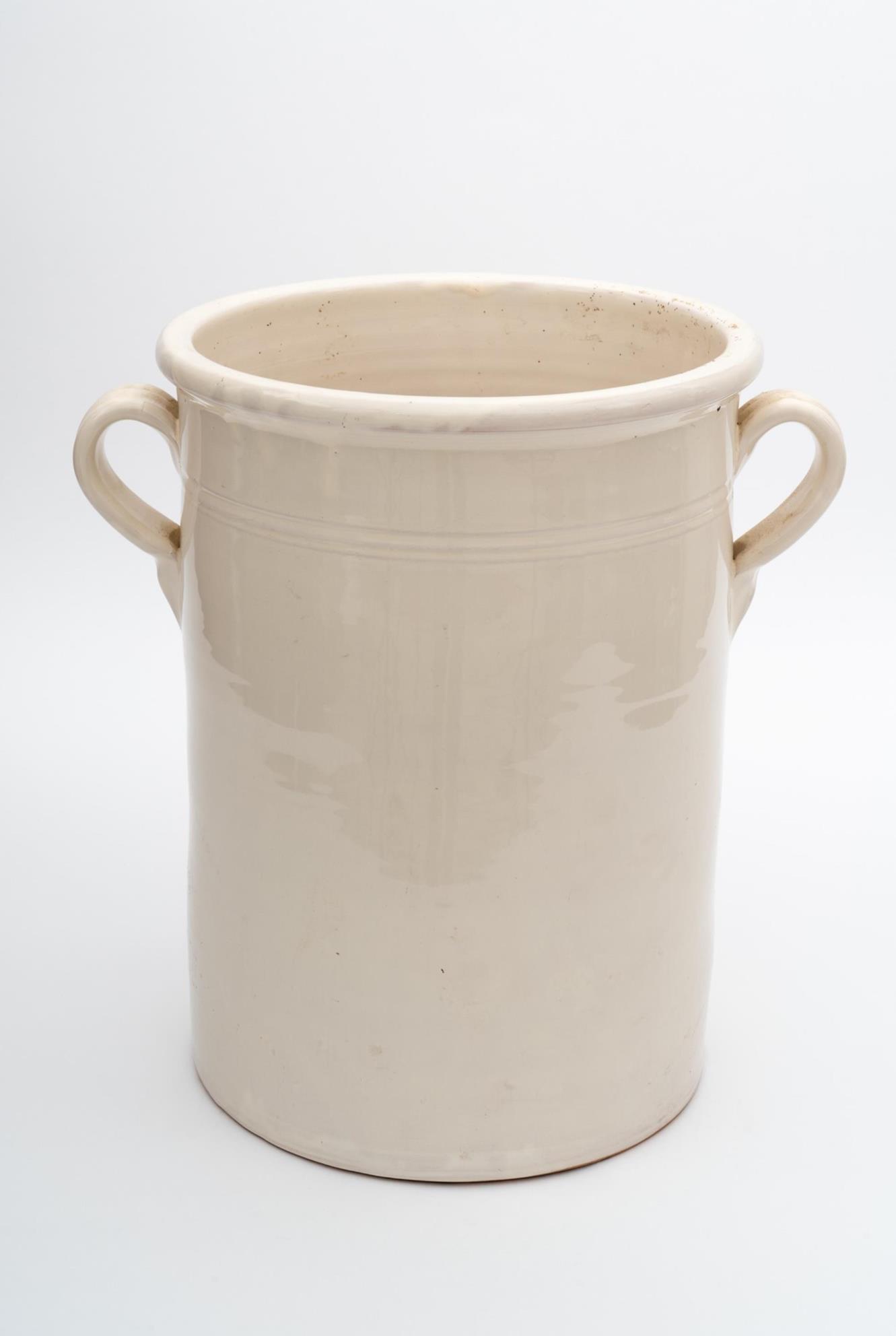 Grande vaso biansato in maiolica bianca