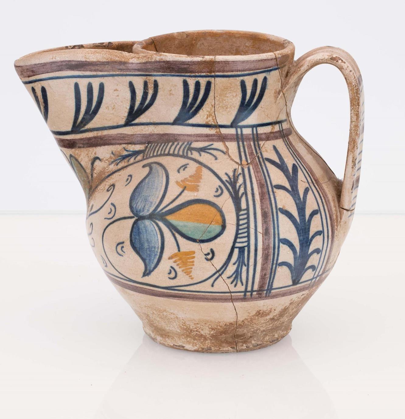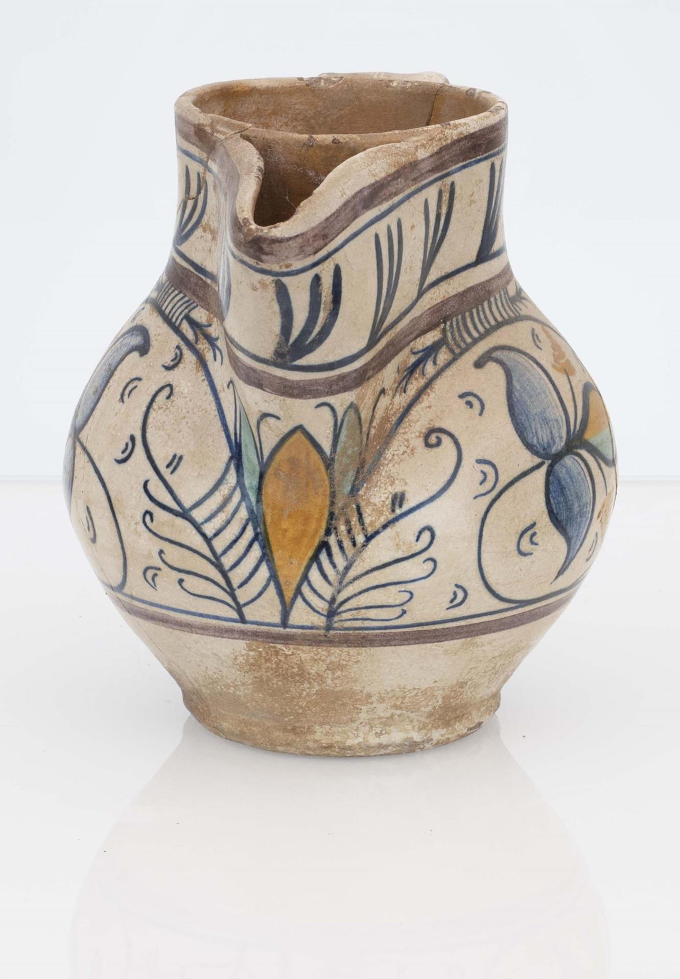 Boccale in maiolica con motivo vegetale a palmetta e a dente di lupo. Manifattura dell'Italia centrale (Umbria o Lazio) fine del XV - primi anni del XVI secolo