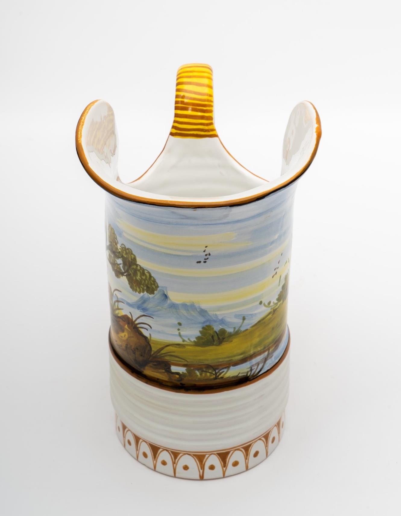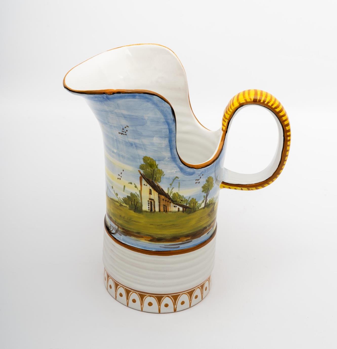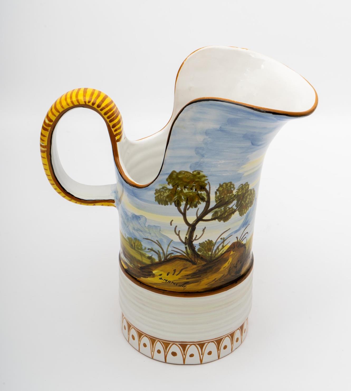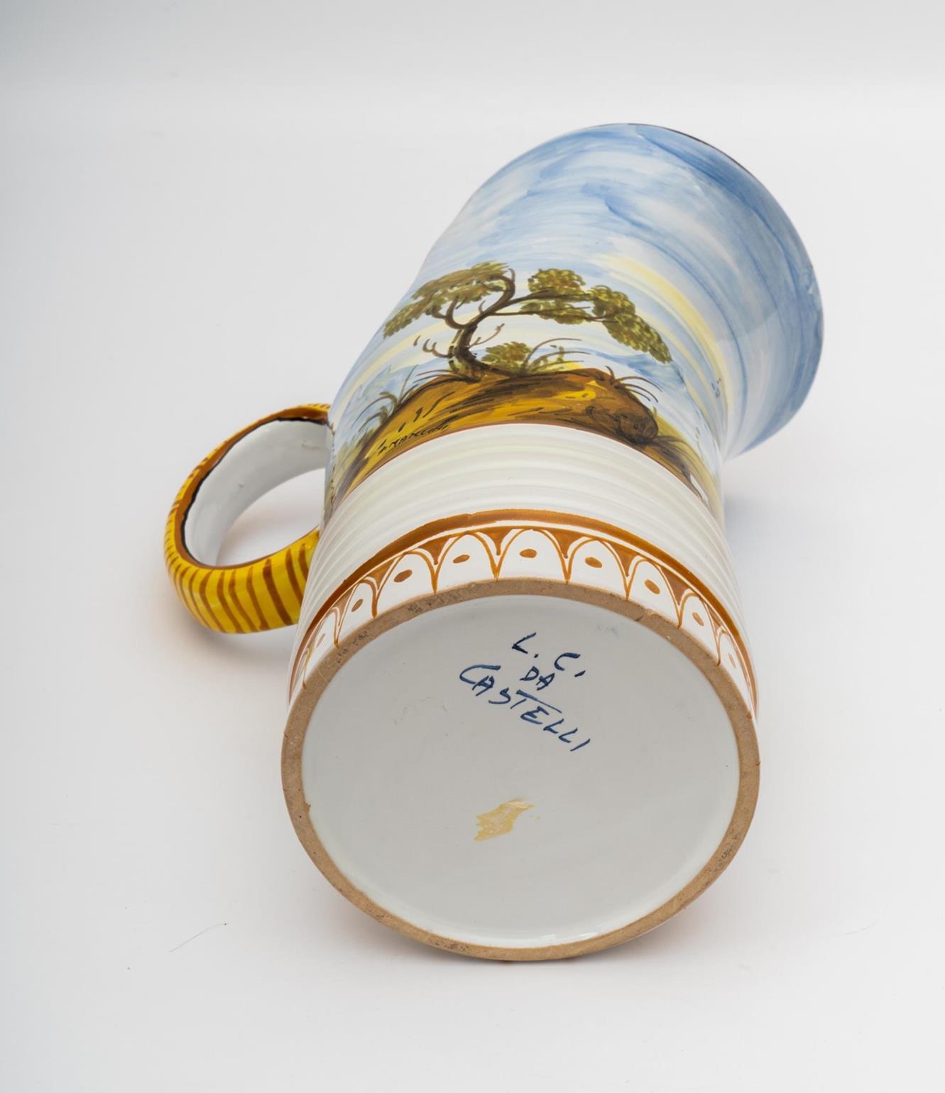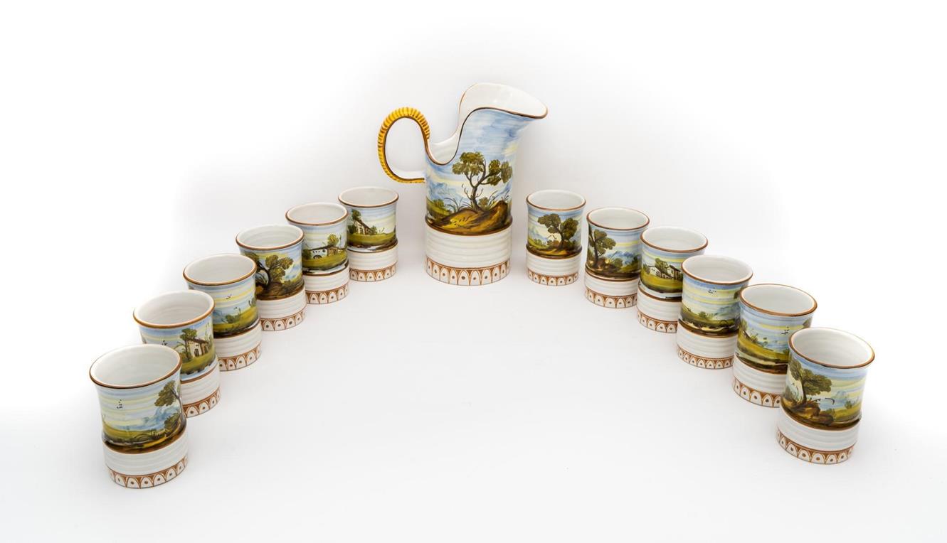Brocca in maiolica con 12 bicchieri firmata "L.C. Da Castelli"