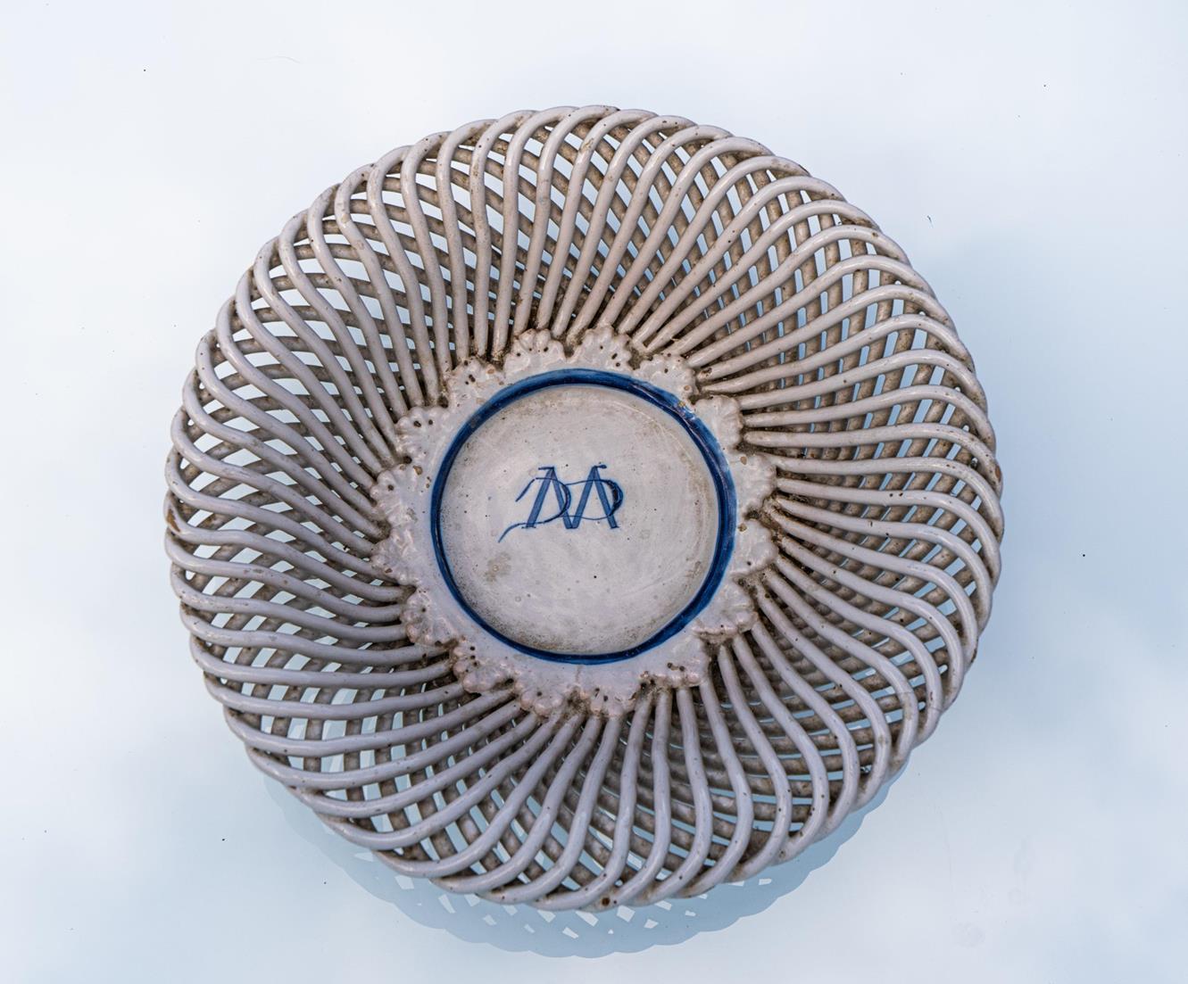 Cestino con iniziali DDM in lettere capitali intrecciate Manifattura di Castelli della prima metà del XIX secolo