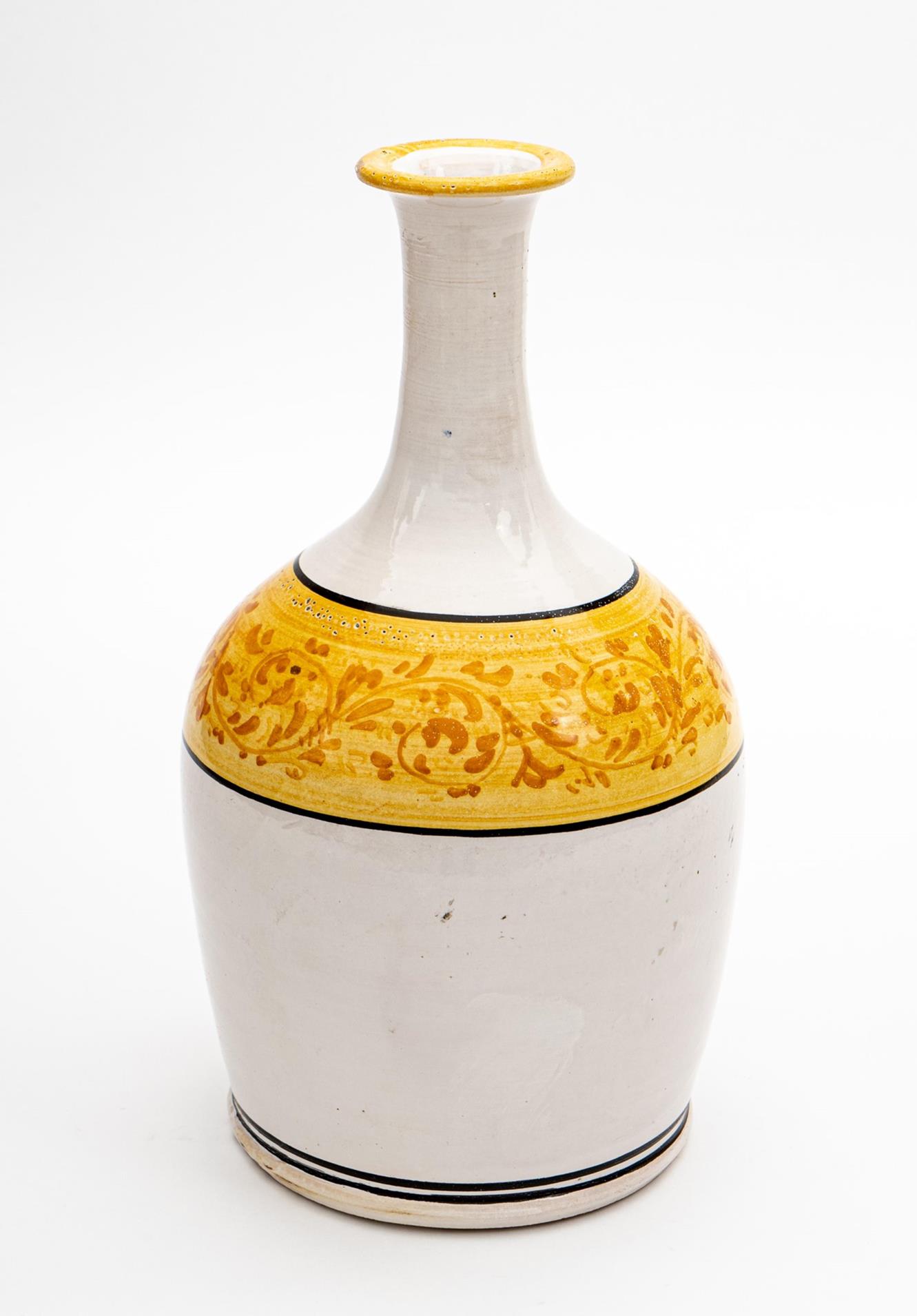 Bottiglia con decoro a girali fitomorfi arancio su fascia gialla Manifattura di Castelli della prima metà del XX secolo