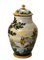 Vaso potiche in maiolica con decoro nel corpo e nel coperchio con ornato a paese