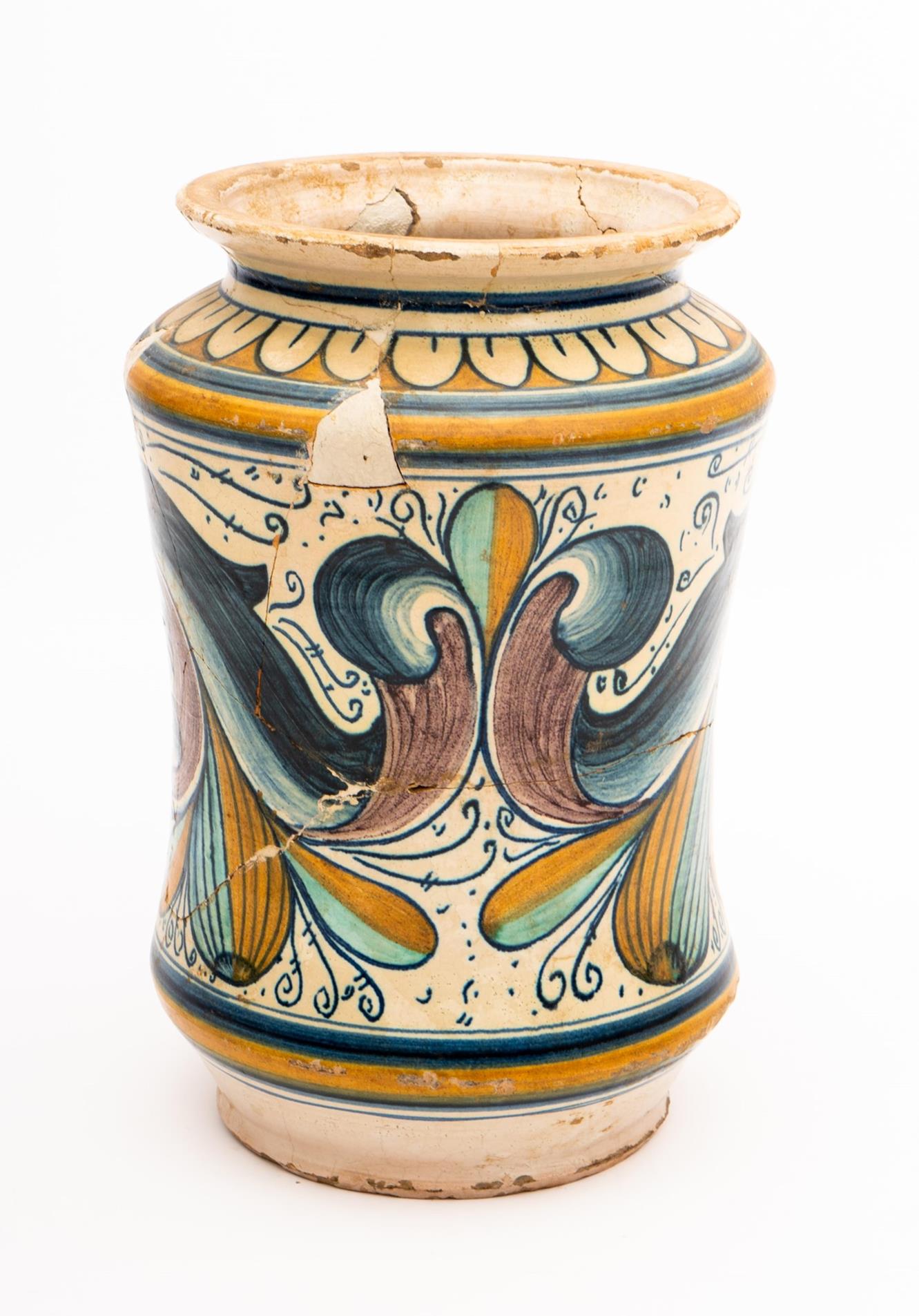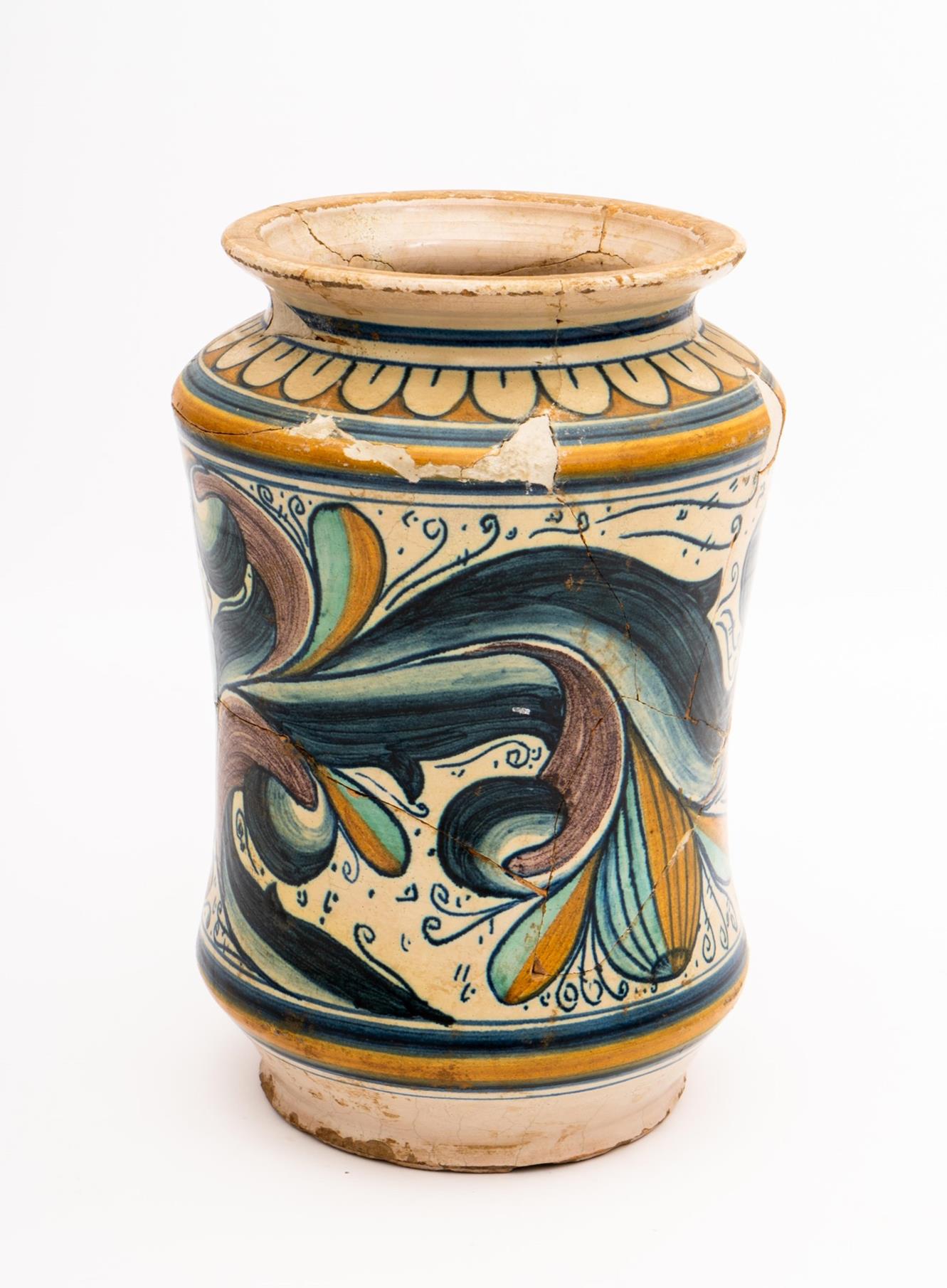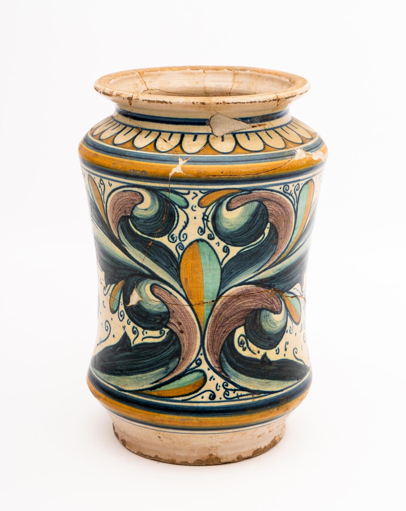 Albarello policromo con decoro a foglia gotica Manifattura di Montelupo del XIX secolo