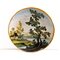 Piatto in maiolica con paesaggio fluviale, torre, case e albero Manifattura di Castelli della metà del XX secolo