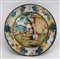 Piattino con scena pastorale nel cavetto e putti, cartigli e serti fioriti nella tesa