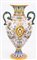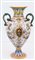 Vaso in maiolica biansato a fondo bianco con anse serpentiformi in verde maculato nero e decoro a grottesche. Manifattura Egisto Fantechi, inizi del XX secolo