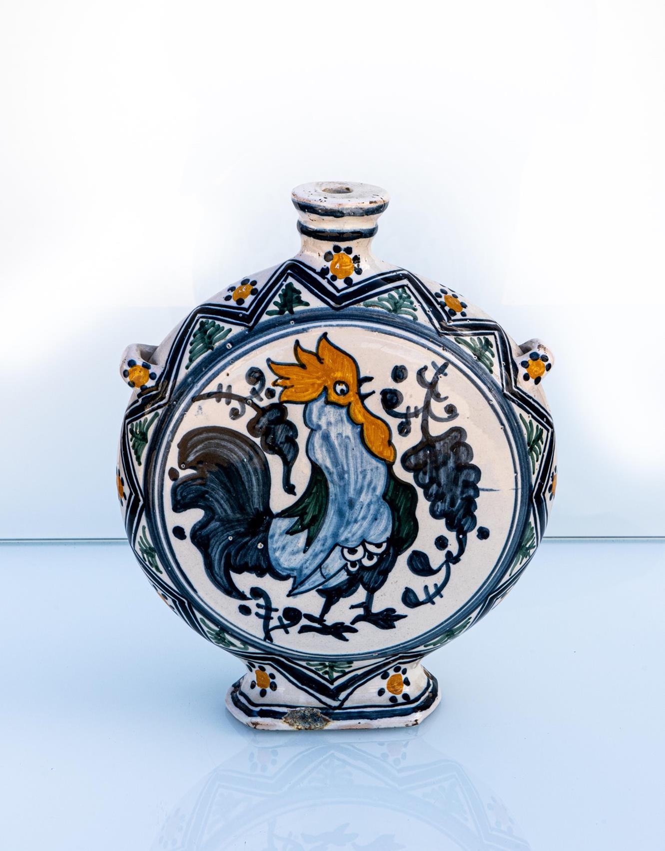Fiasca da pellegrino con gallo sul fronte Manifattura di Castelli del XX secolo