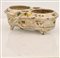 Oliera-saliera in maiolica decorata con delicati motivi floreali. Presa a serto fiorito. Manifattura di Cerreto Sannita, metà del XVIII secolo.