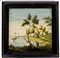 Mattonella maiolicata raffigurante baia con navi a vela e militi in paesaggio rurale. Firmato E. di Vincenzo