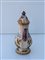 Piccola caffettiera con lettera "A" e decoro con paesaggio e ruderi.