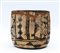 Bicchiere in maiolica arcaica ingobbiata e decorata con elementi geometrici, corpo tronco conico monoansato Manifattura umbro-laziale, ultimo quarto del XIV - inizi del XV secolo