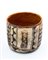 Bicchiere in maiolica arcaica ingobbiata e decorata con elementi geometrici, corpo tronco conico monoansato