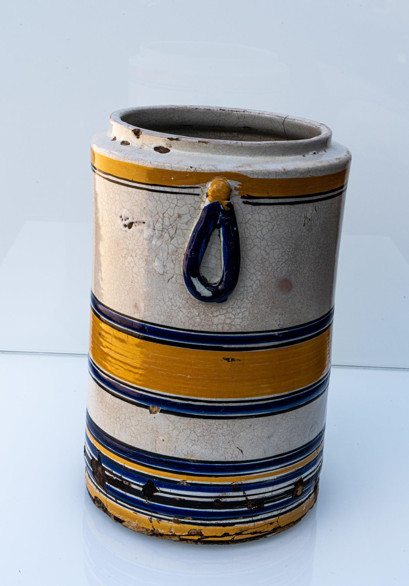 Grande portastrutto con decoro giallo e blu Manifattura Castelli della fine del XIX secolo e degli inizi del XX secolo