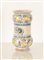 Lot 334 | Albarello da farmacia decorato con girali fioriti e pomi dorati. Al centro cartiglio indicante denominazione del farmaco contenuto