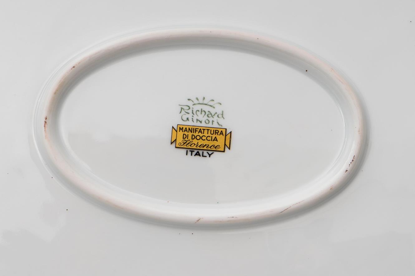 Servizio di piatti Ginori collezione Contessa in fine porcellana bianca, decoro verde smeraldo e preziosa filettatura in oro zecchino