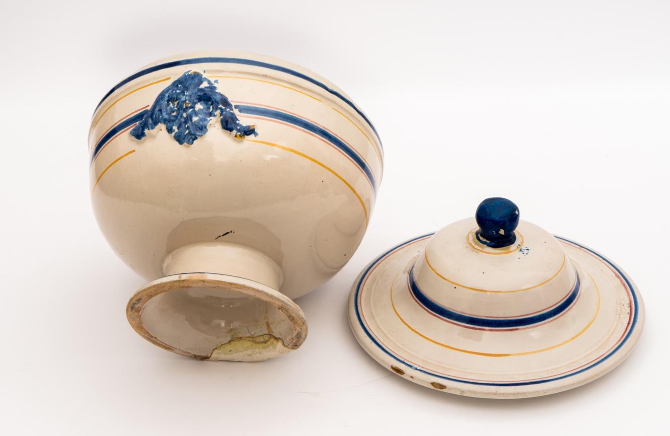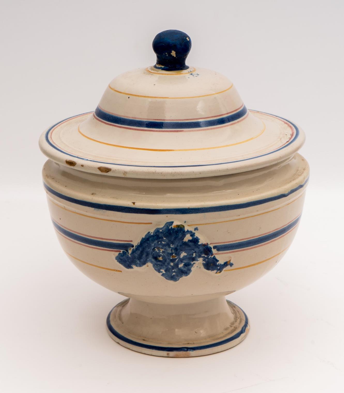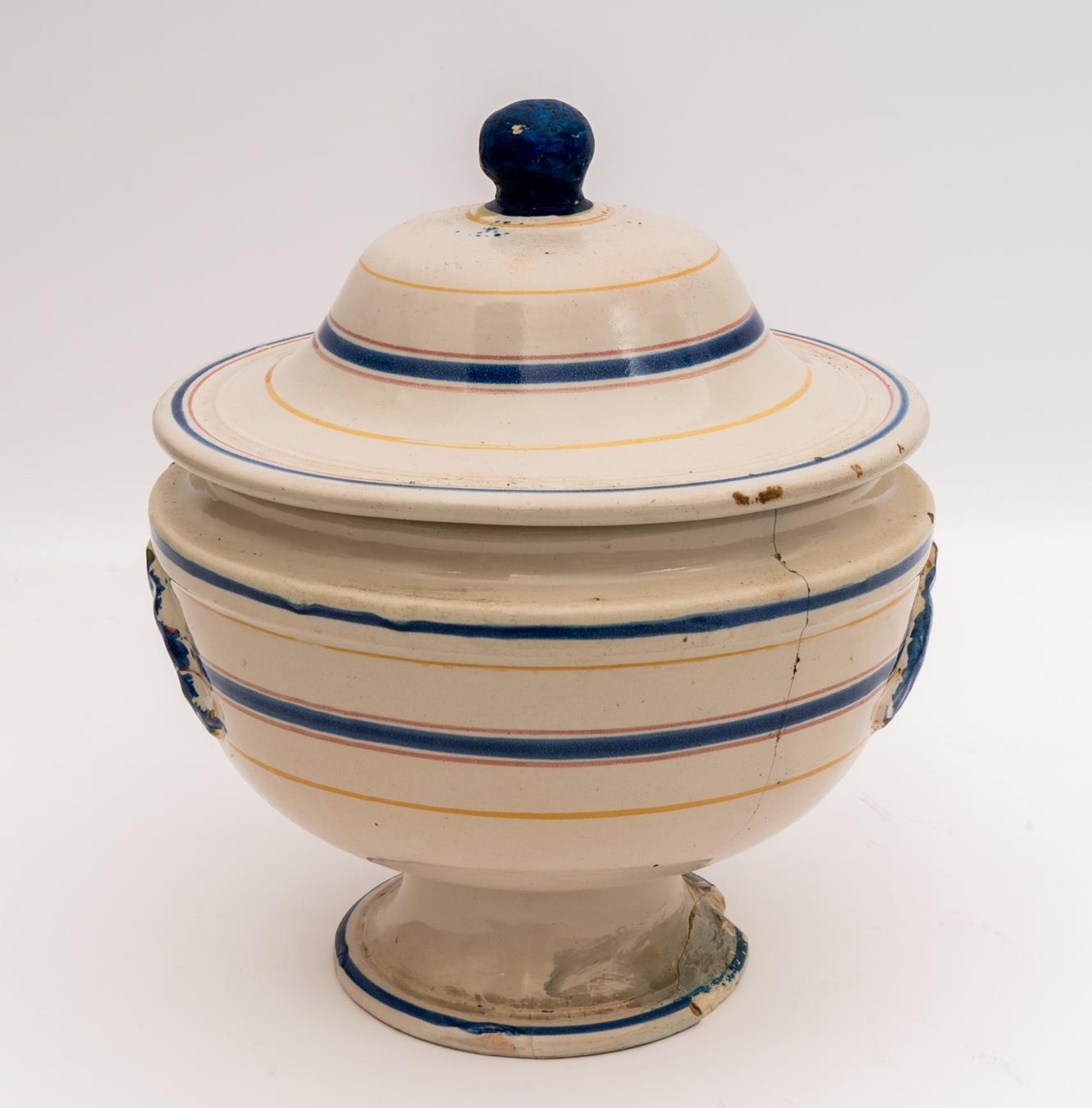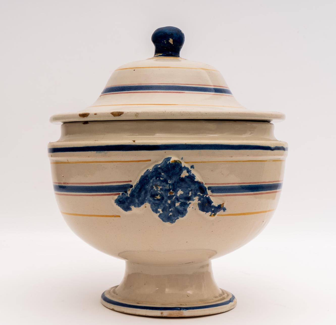 Zuppiera con decoro a cerchi concentrici, prese a serti fioriti. Manifattura di Castelli della fine del XIX secolo