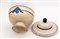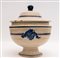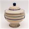 Zuppiera con decoro a cerchi concentrici, prese a serti fioriti.