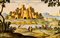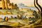 Lot 356 | Mattonella con decoro ad ornato a paese e viandanti. Cornice dorata Nicola Grue il Giovane