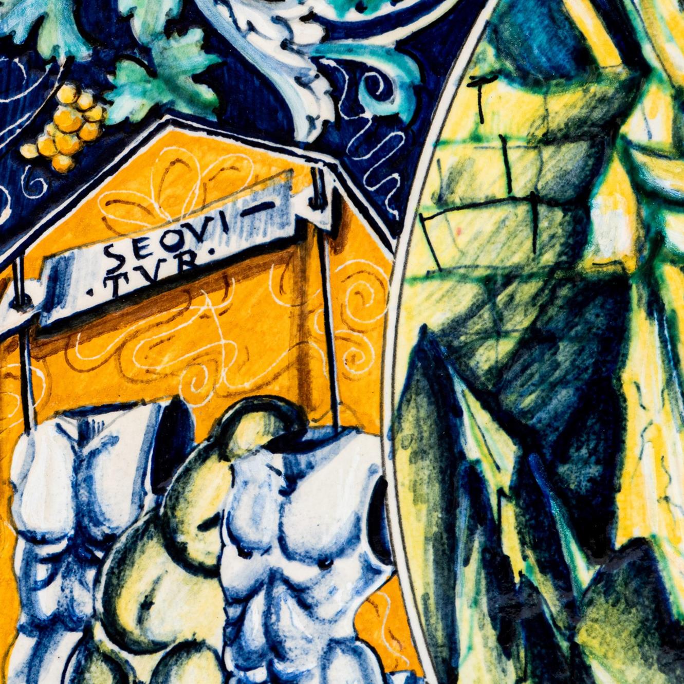 Grande piatto da parata realizzato da Vitali Orfeo. Manifattura Molaroni, Pesaro del XX secolo