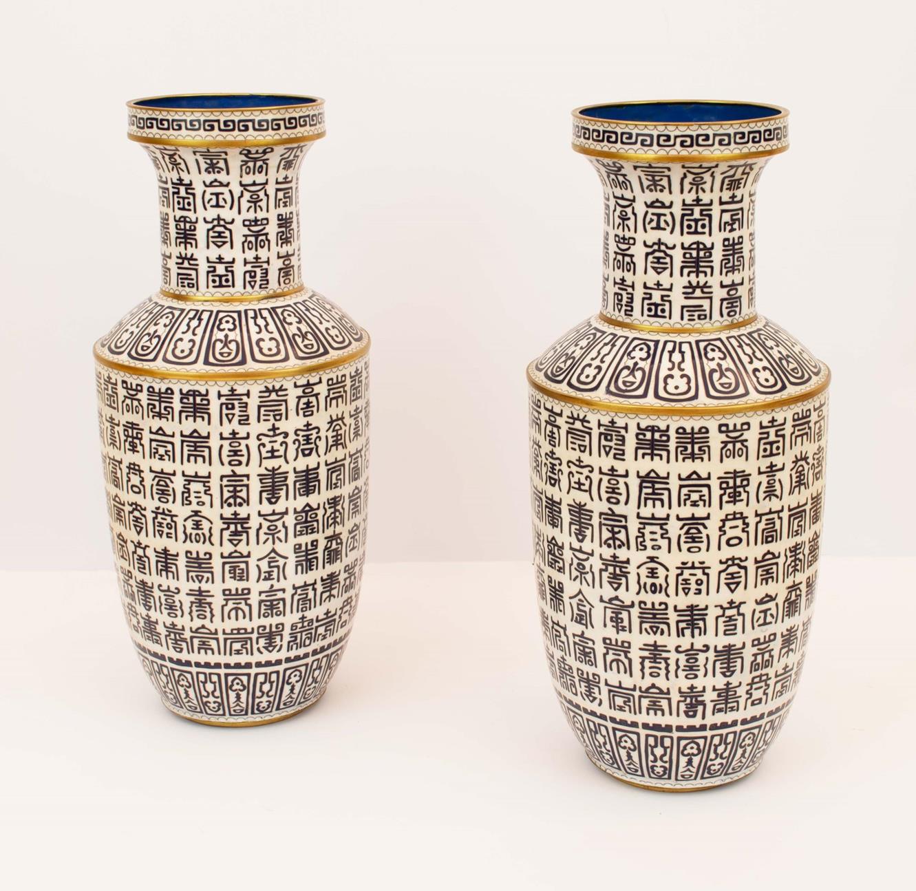 Coppia di vasi cloissonet decorati con caratteri zhanshu. Cina, XIX secolo