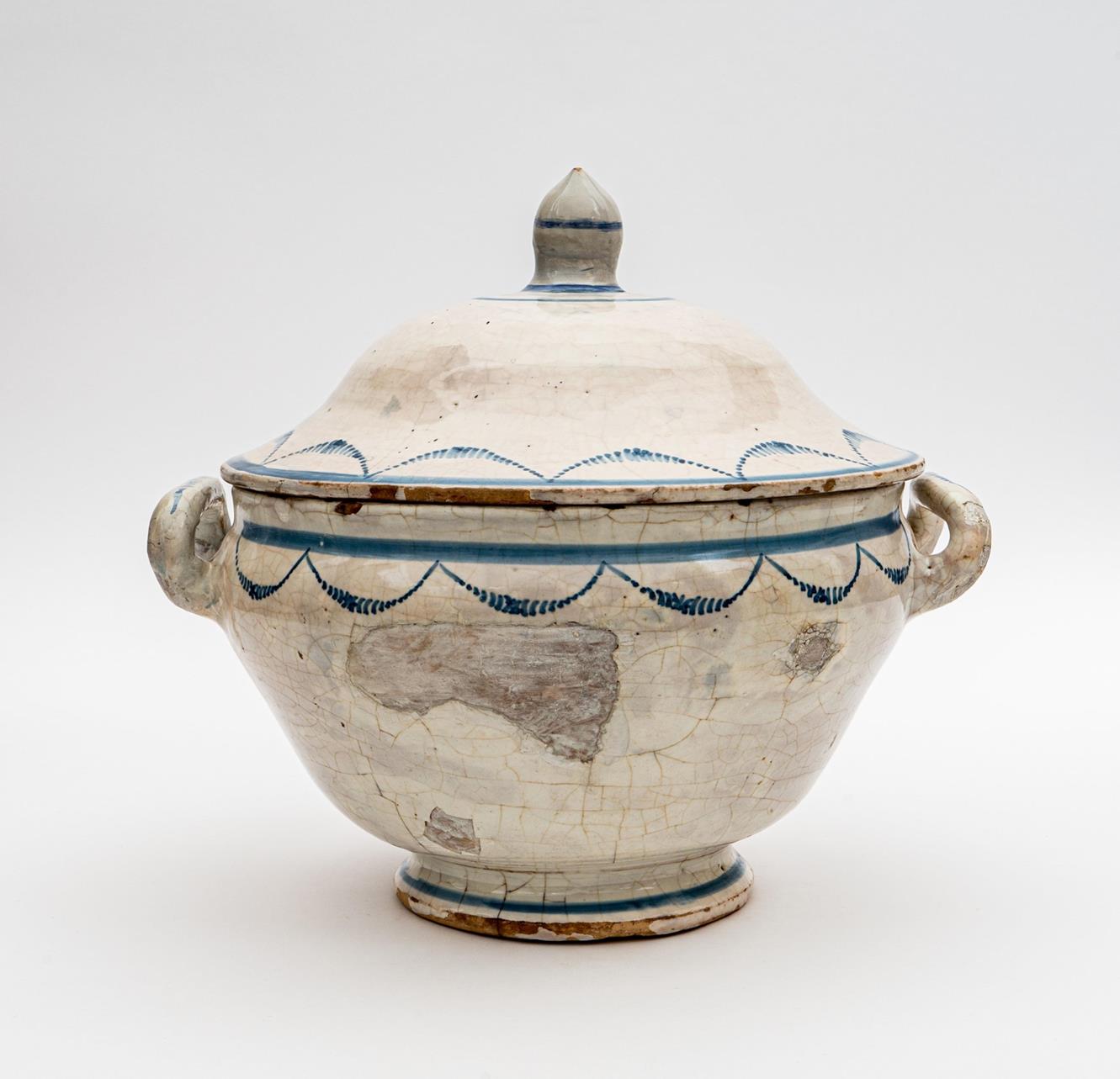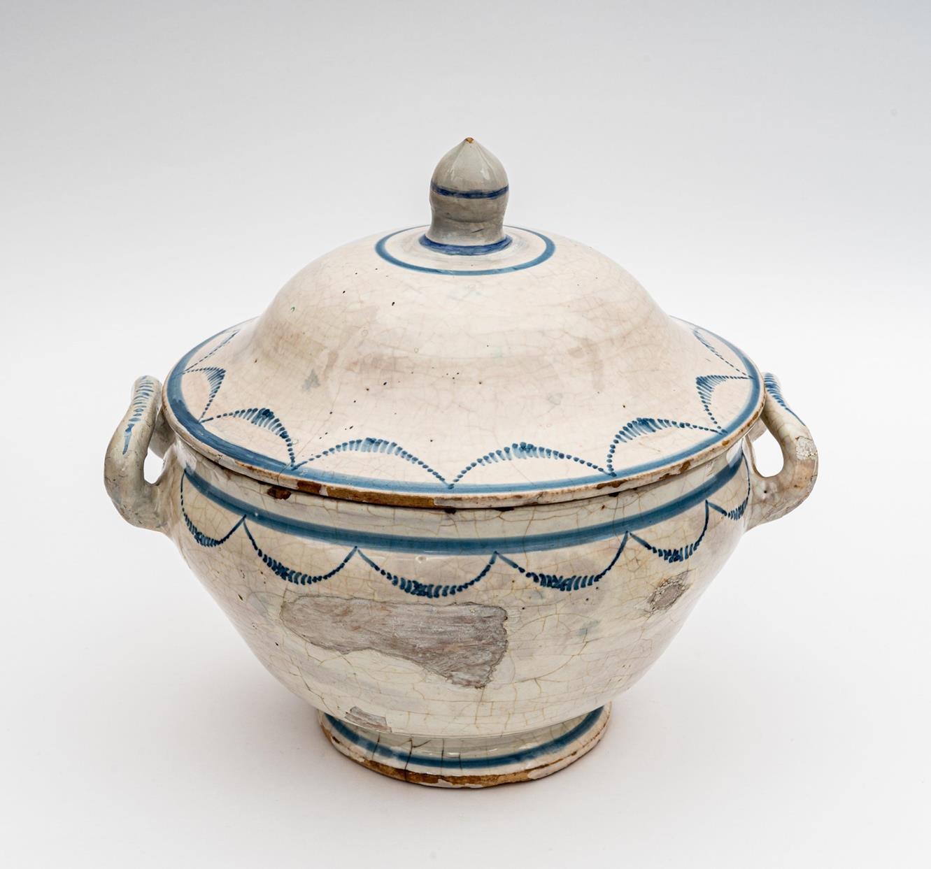 Zuppiera con decoro a festoni blu Manifattura di Castelli del terzo quarto del XIX secolo