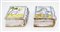 Coppia di porta liquori - scaldamani a foggia di libro decorati al fronte con figura muliebre e scritta "Franca Lisa" e figura di coniglio