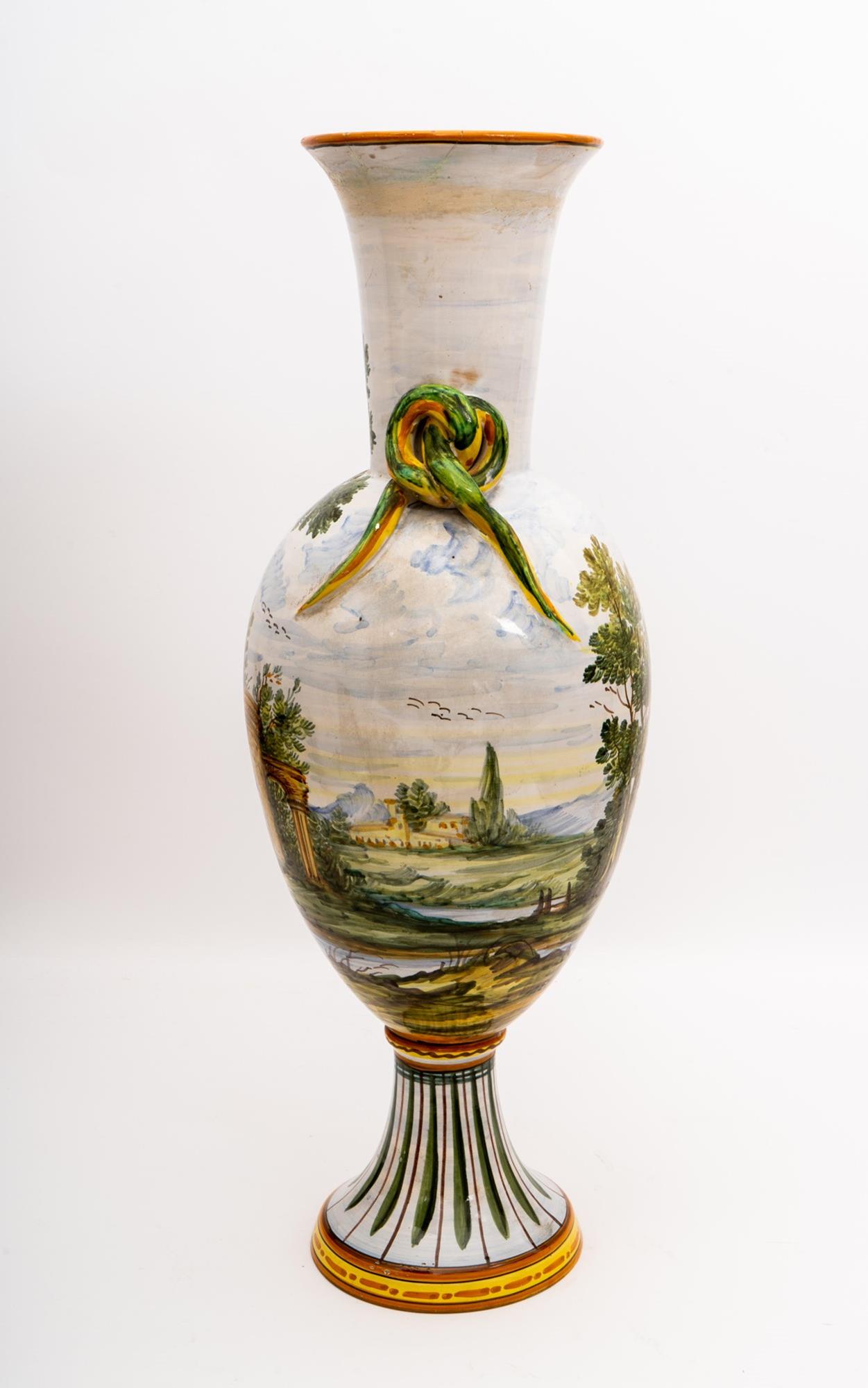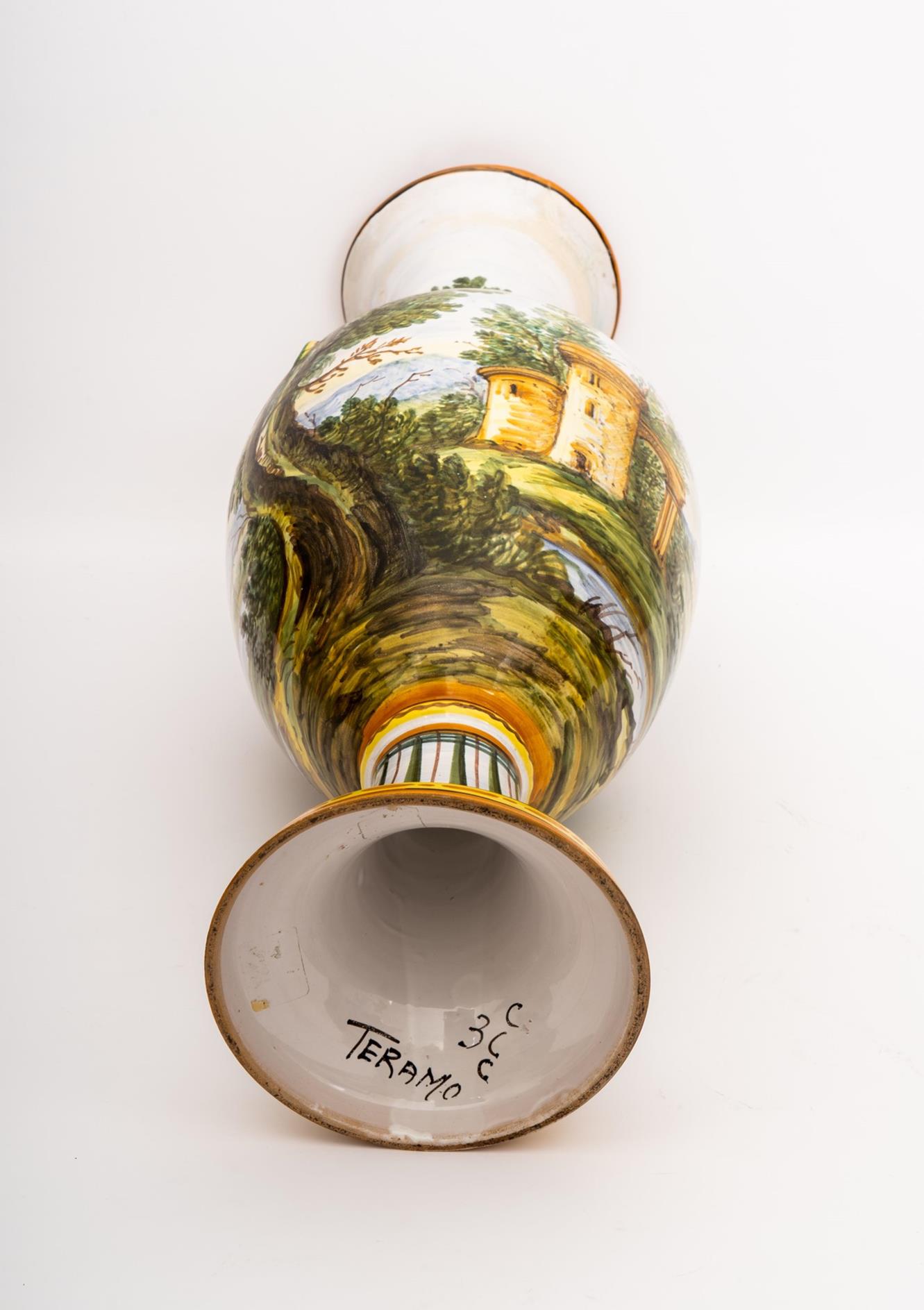 Vaso con decoro ad ornato a paese Manifattura di Castelli del XX secolo