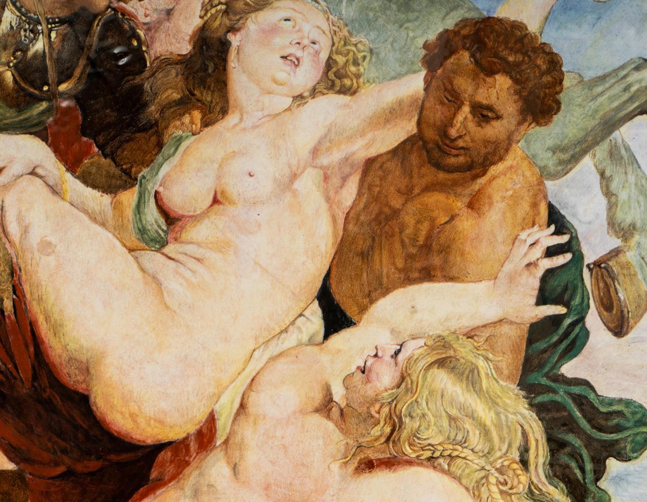 Grande mattonella in maiolica raffigurante il rapimento delle figlie di Leucippo. Rinaldo Pardi