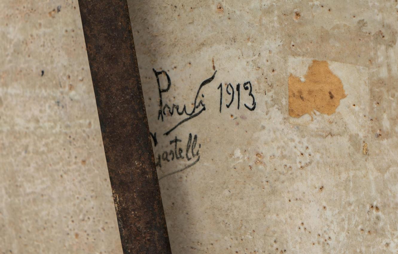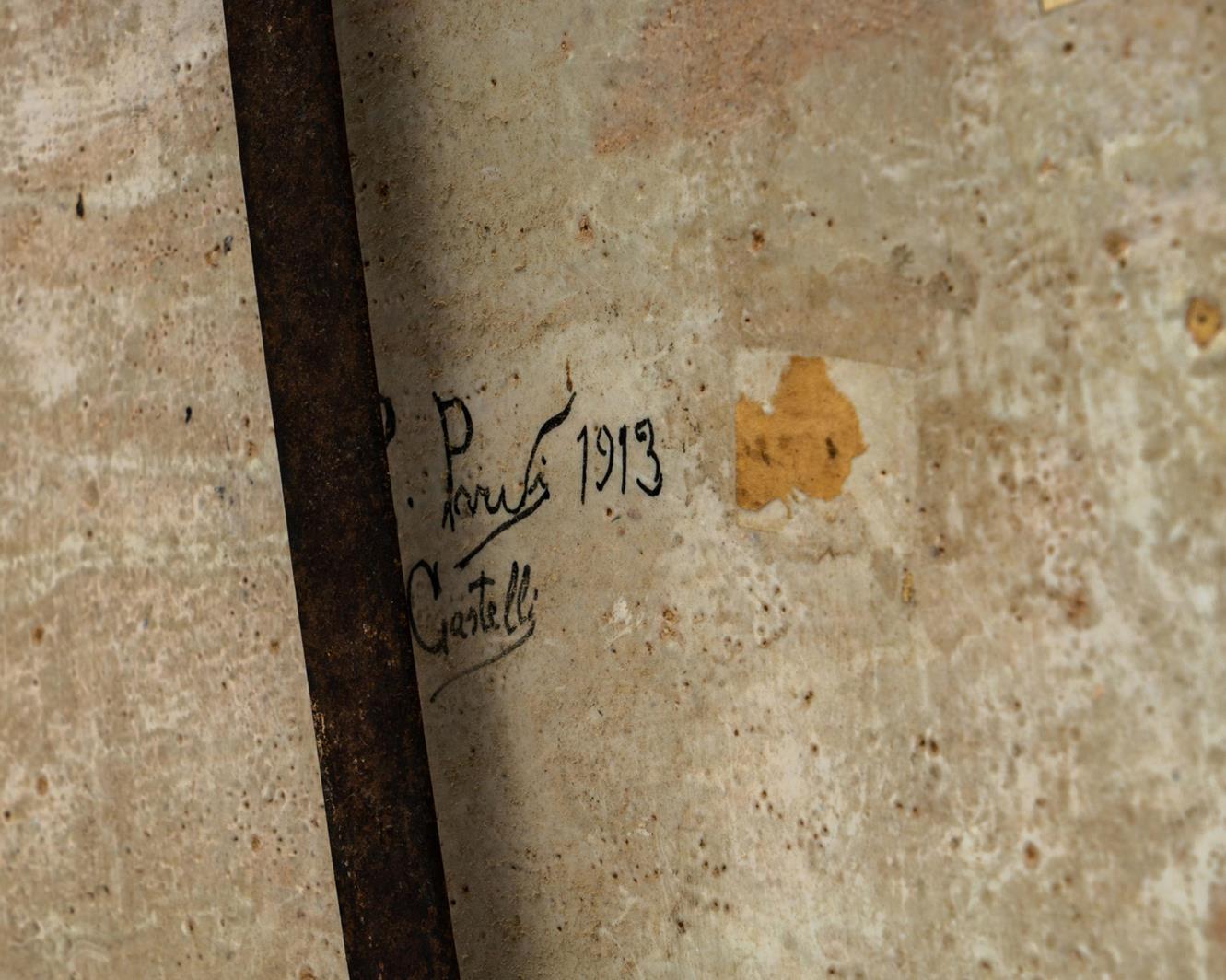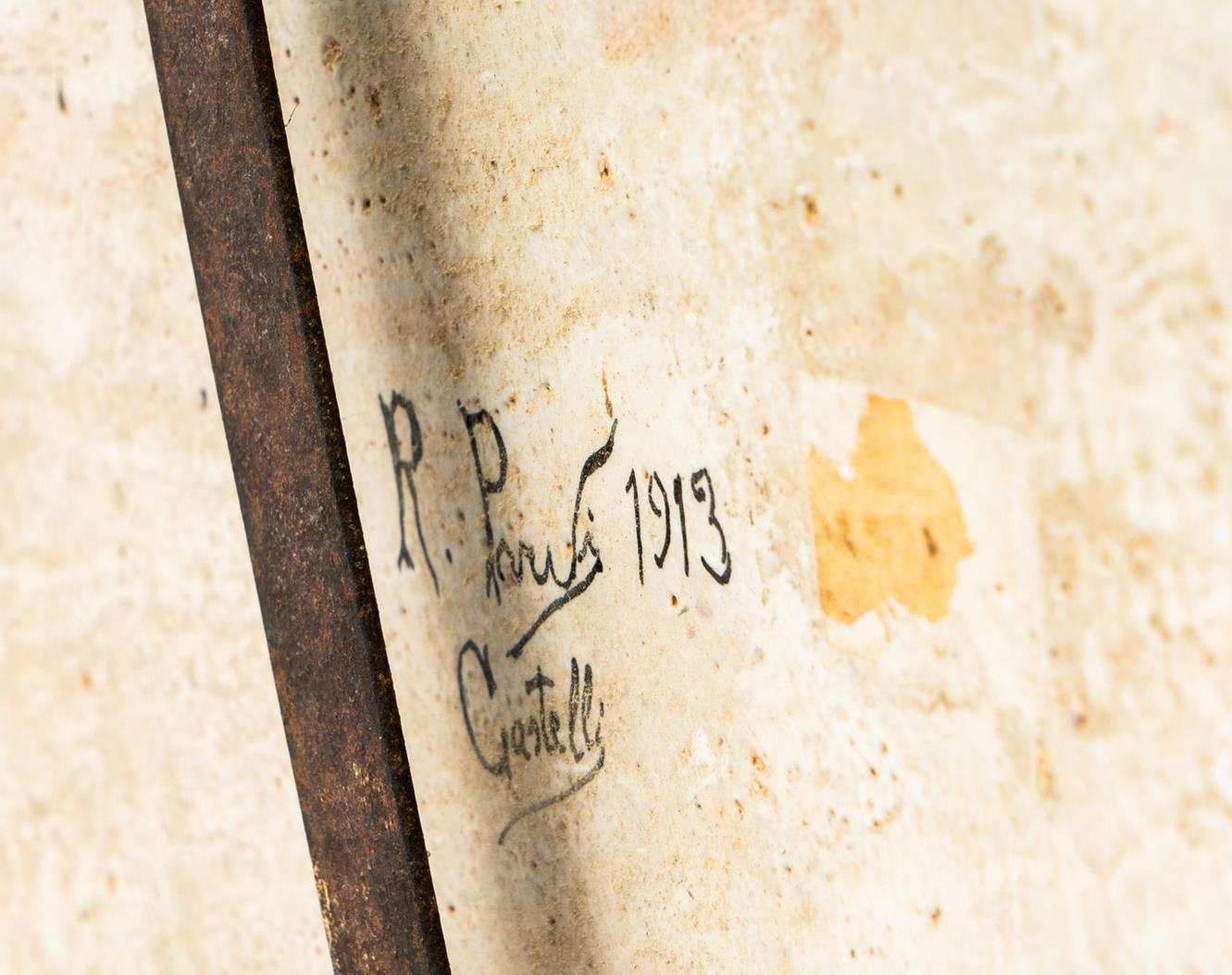 Al retro firma R. Pardi, 1913, Castelli e talloncini in carta recante il n. 10 del catalogo "Manifestazione d'arte Ceramica Castelli 1967,