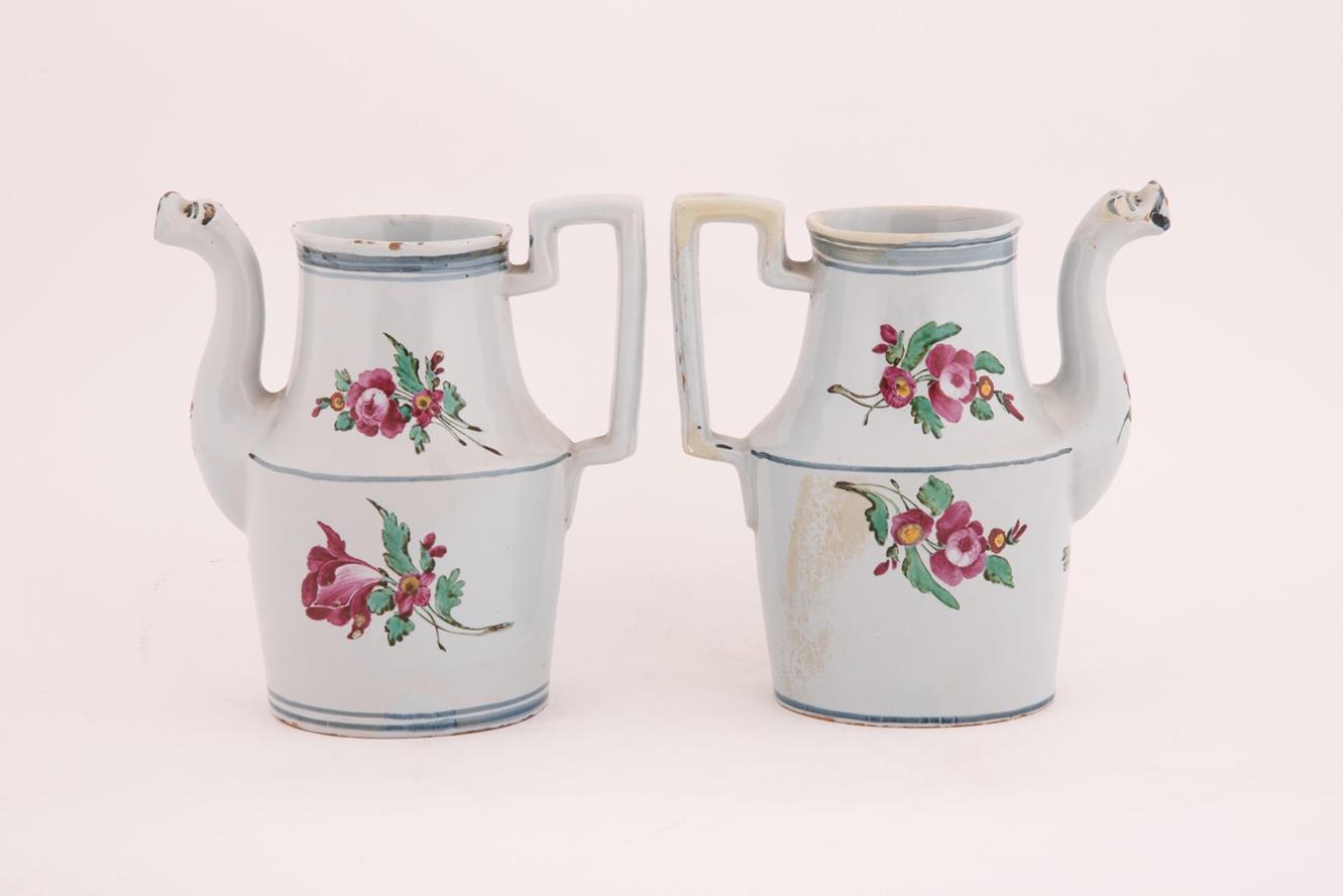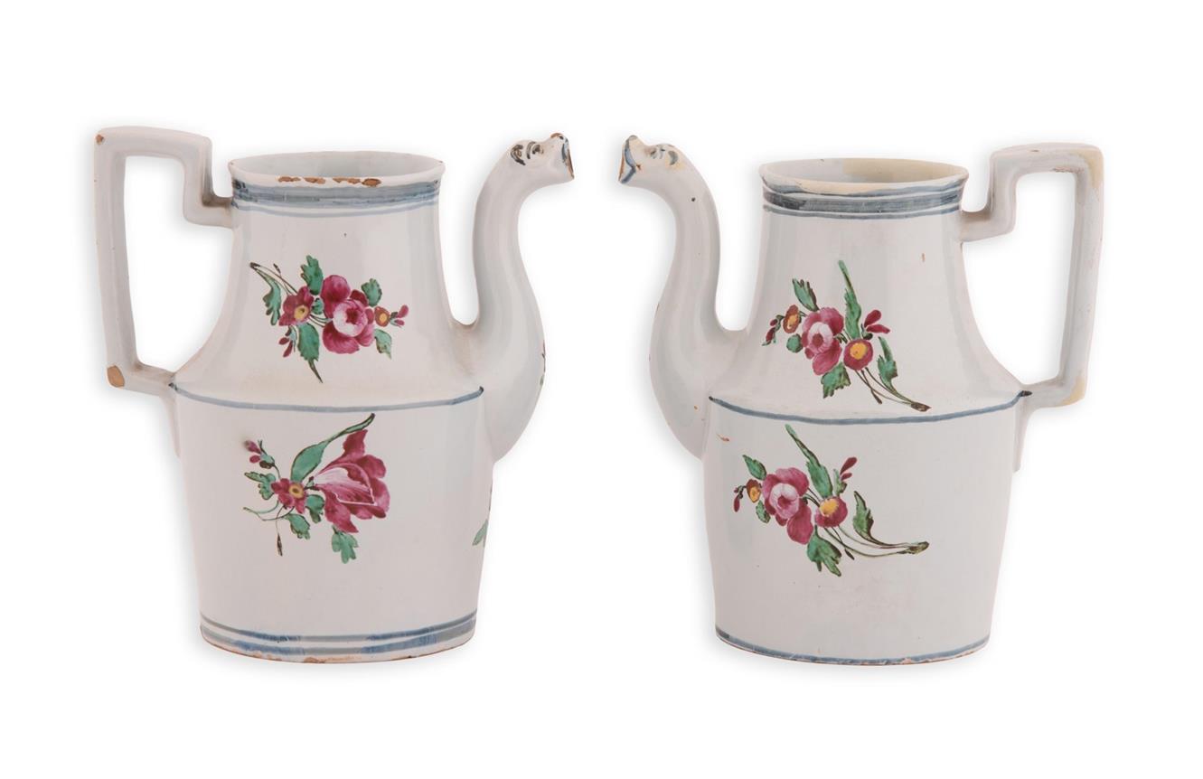 Lot 396 | Coppia di caffettiere Castelli in maiolica con decorazione policroma a terzo fuoco con ramoscelli di rose sparse. Gesualdo Fuina (seguace di)