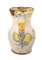 Boccale in maiolica con becco carenato decorato con ampia riserva centrale centrata da uno scudo con al centro un compasso e la figura di un'aquila stilizzata