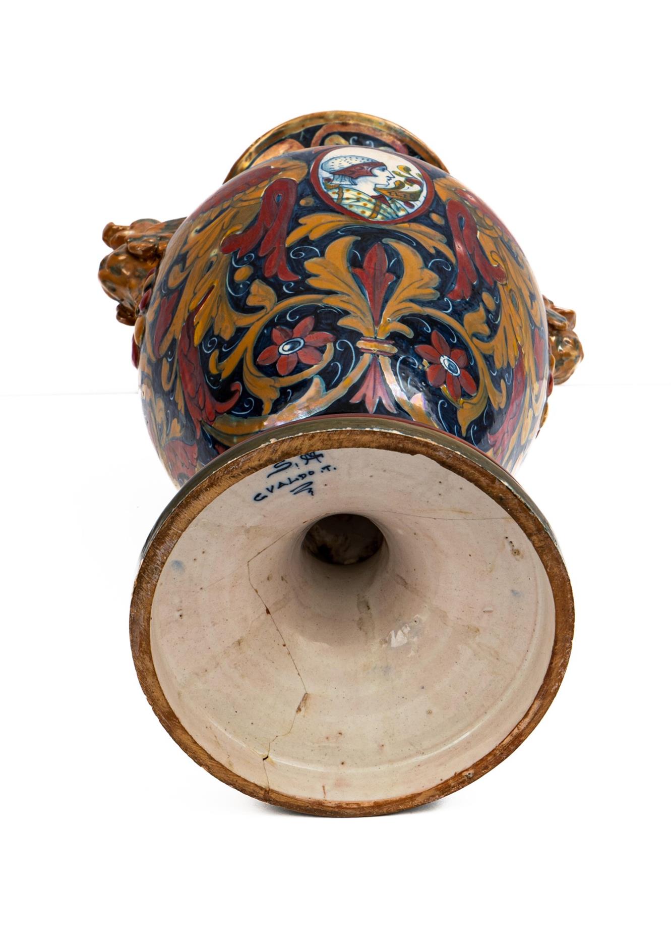 Anfora biansata a lustro rosso con draghi riserve con profili e mascheroni. S.C.M. Gualdo Tadino Manifattura di Gualdo Tadino del XX secolo