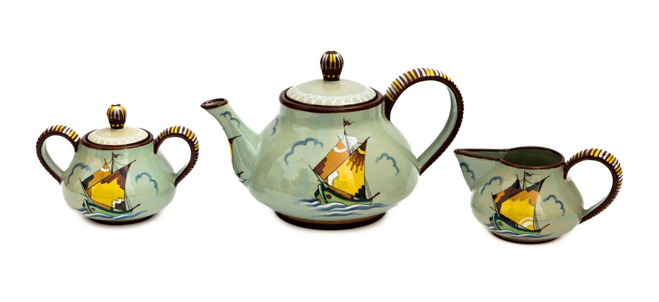 Lot 411 | Servizio da the decorato con barche a vela tra le onde composto da: Manifattura metaurense del XX secolo