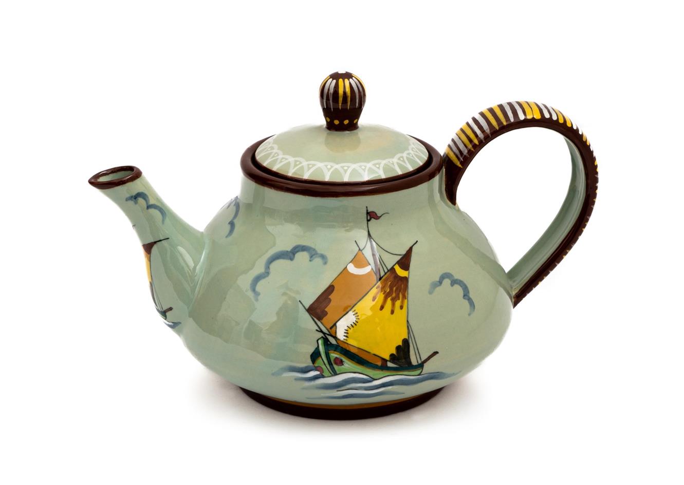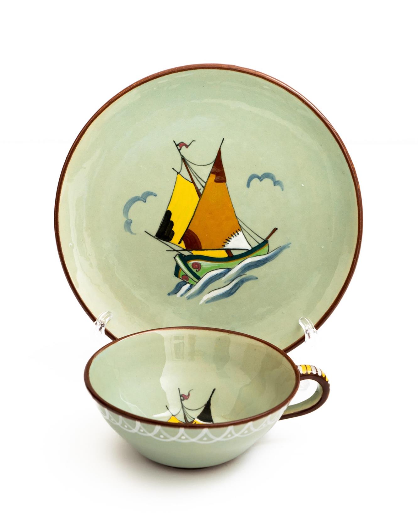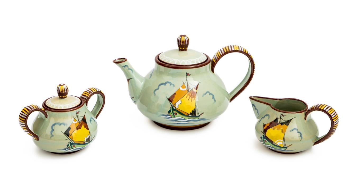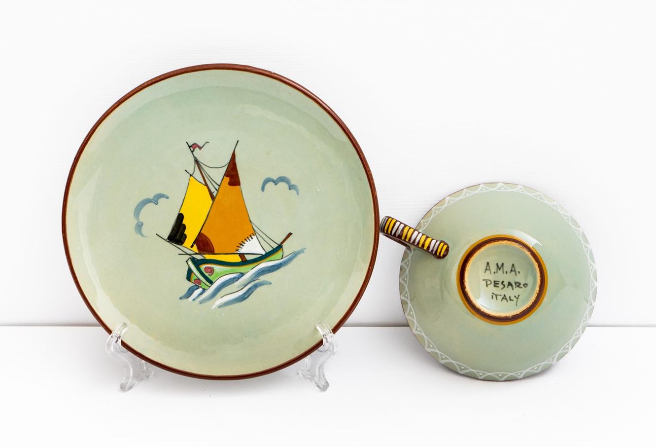 Servizio da the decorato con barche a vela tra le onde composto da: Manifattura metaurense del XX secolo