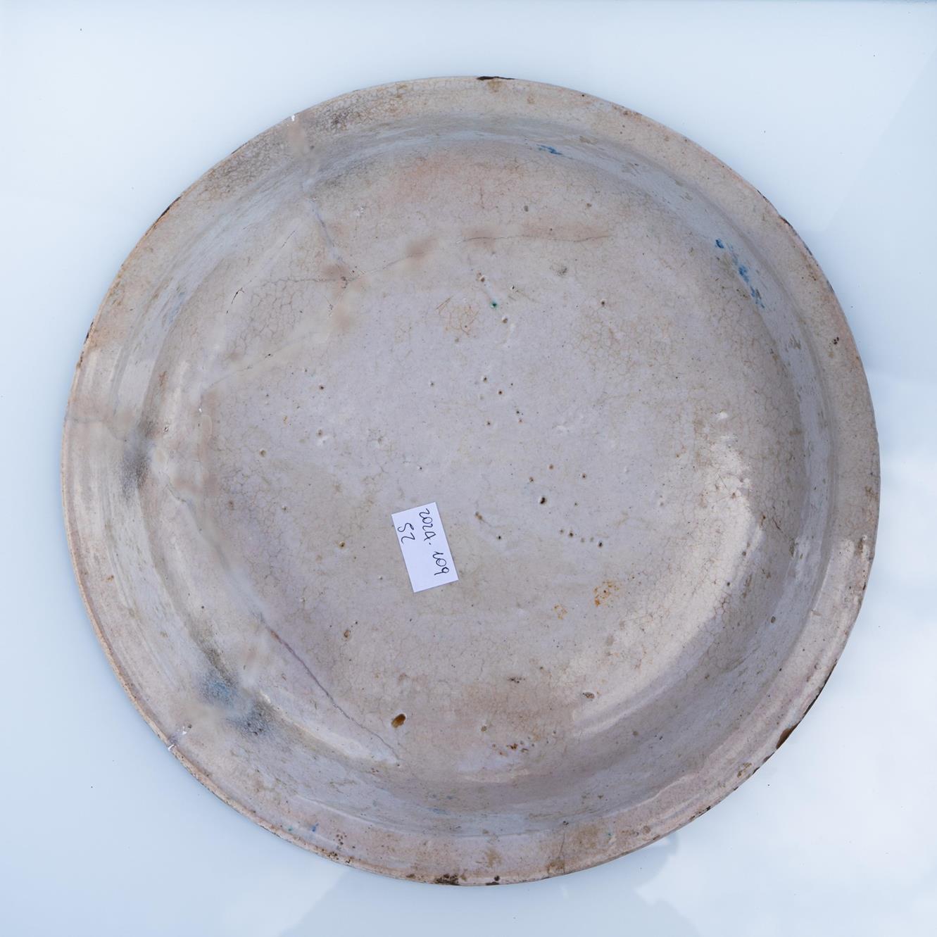 Grande piatto con decoro a stampo blu sulla tesa e a paesaggio nel cavetto Manifattura dell'Alto Molise della seconda metà del XIX secolo