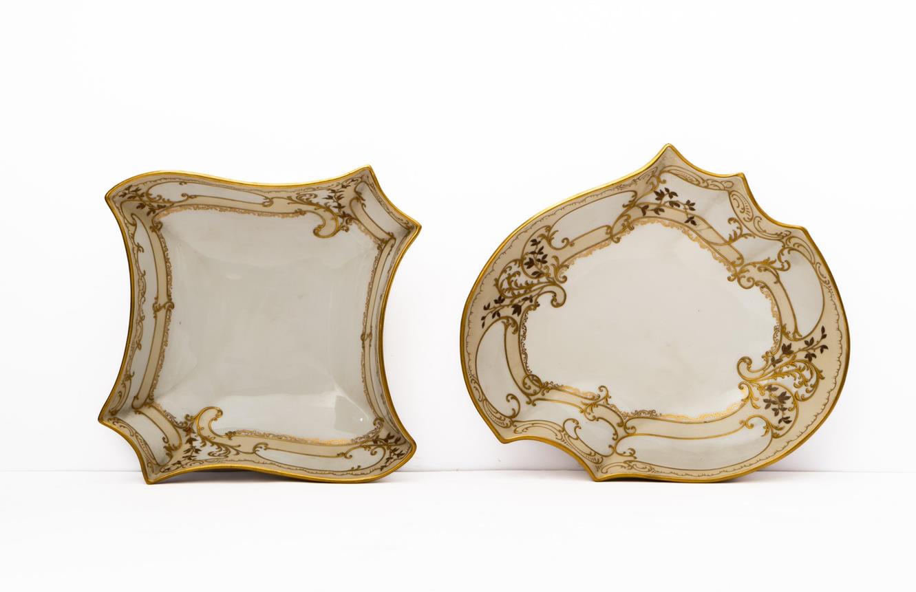 Lot 428 | Servizio da pranzo mistilineo da sei con finitura a rilievo in oro della Pirker & Hammer