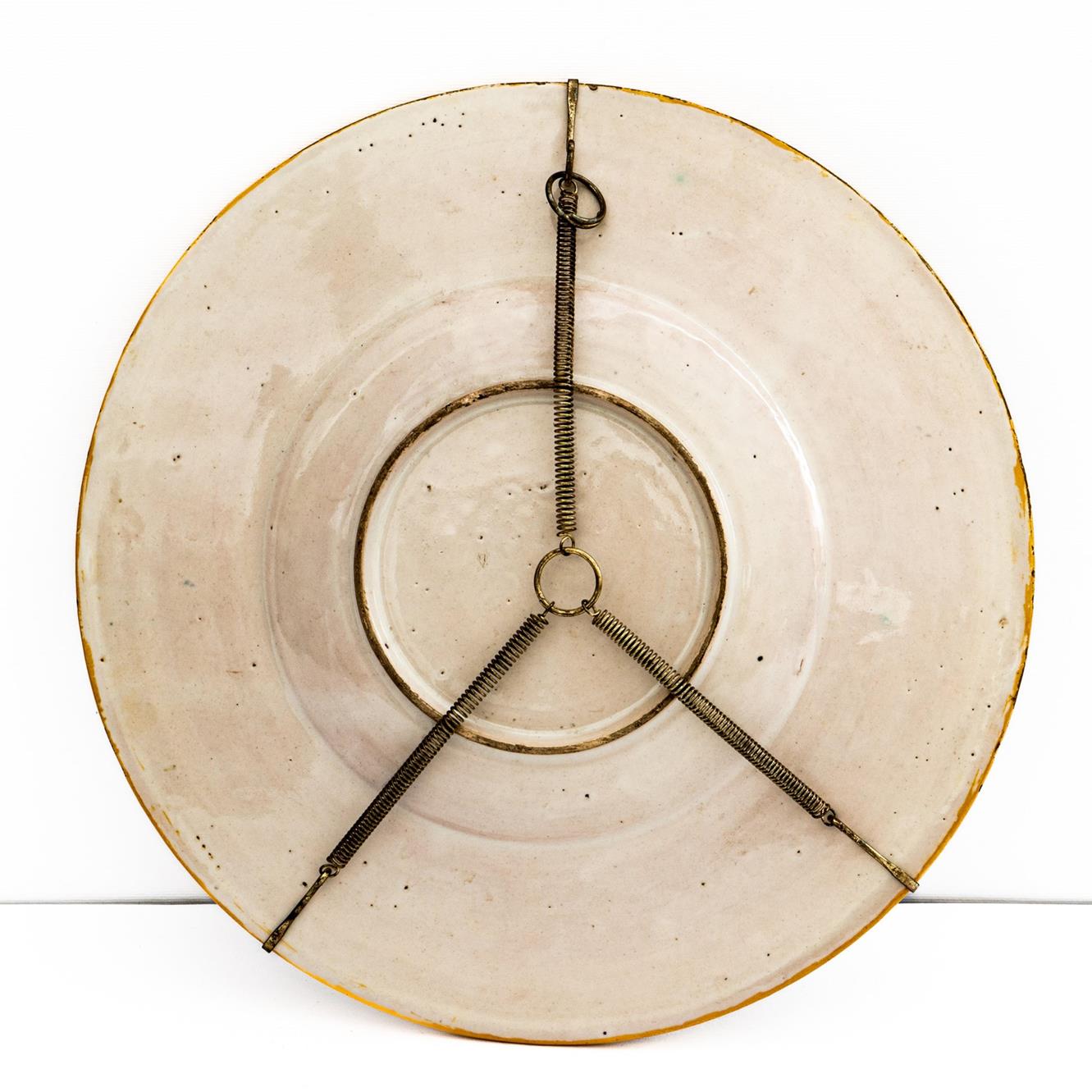 Piattino con donna con collana nel cavetto e decoro a putti e mascheroni sulla tesa Manifattura del Centro Italia della fine del XIX secolo