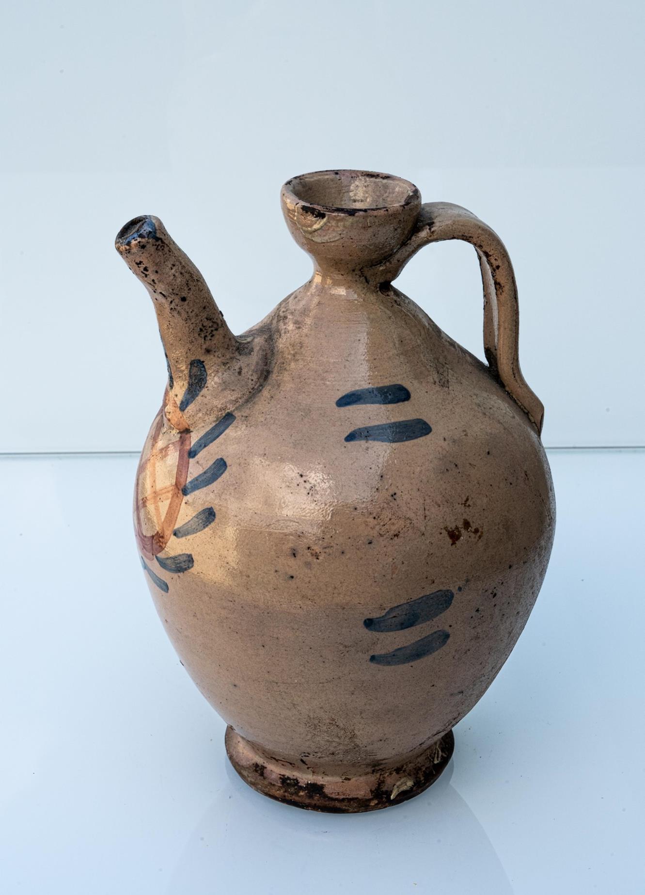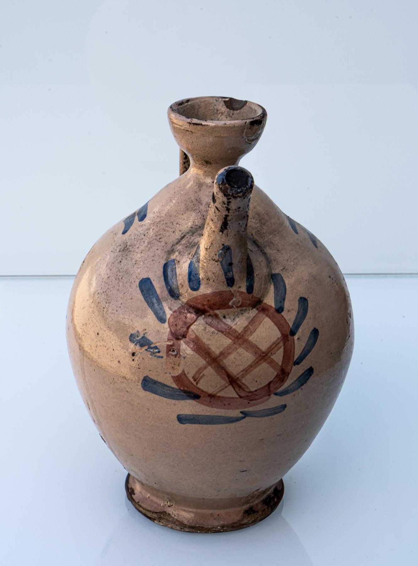 Oliera con decoro a graticcio in rosso e blu Manifattura pugliese del XIX secolo