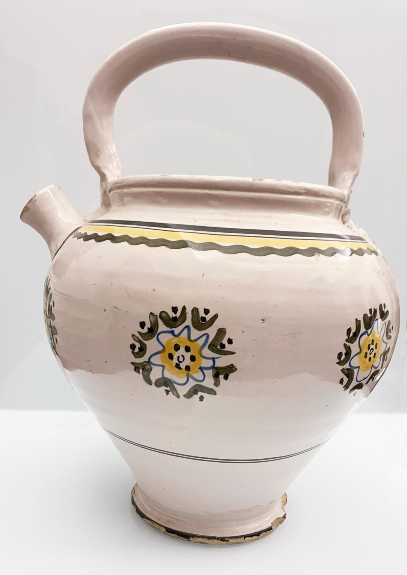 Orciolo monoansato bianco con decoro a fiori stilizzati. Manifattura toscana della fine del XIX secolo