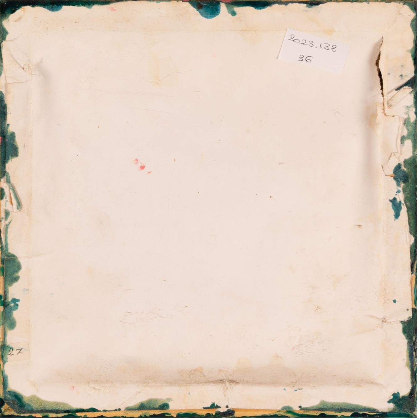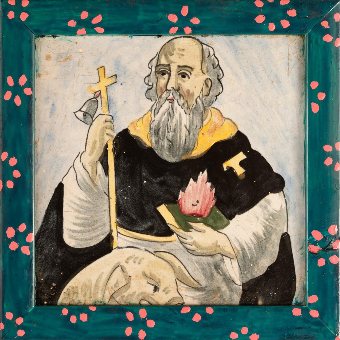 Mattonella votiva rappresentante Sant’Antonio Abate con i suoi attributi. Manifattura di Castelli, XX secolo